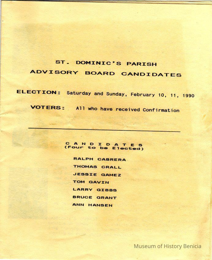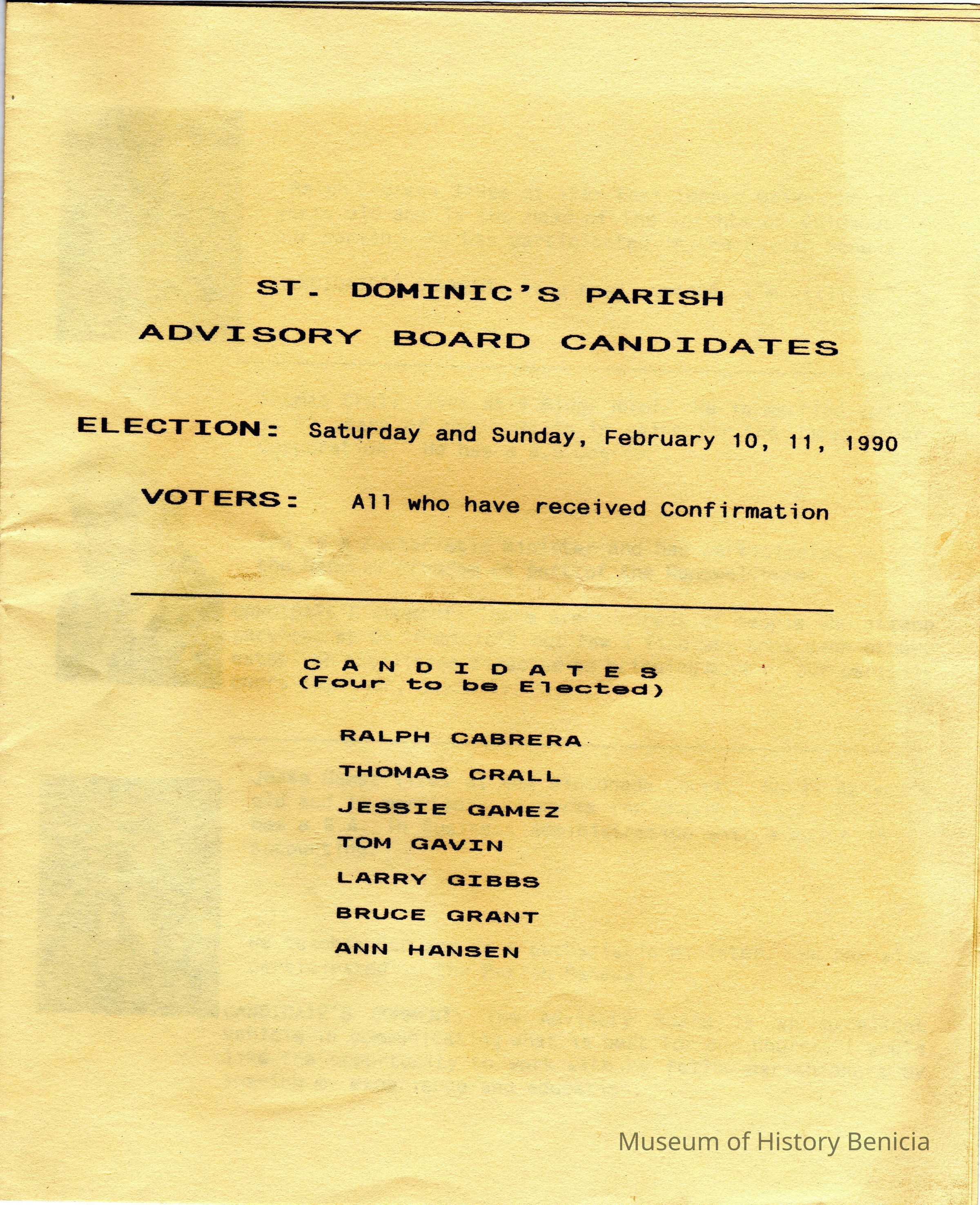 Pamphlet on St Dominic's Parish Advisory Board Canidates 1990.