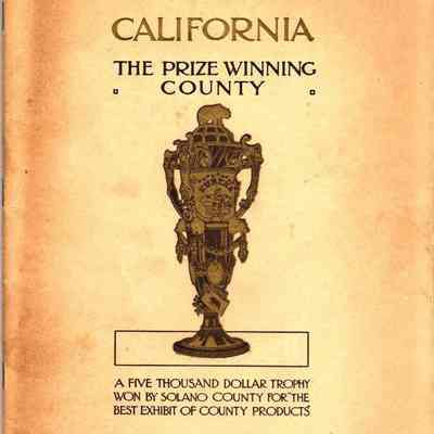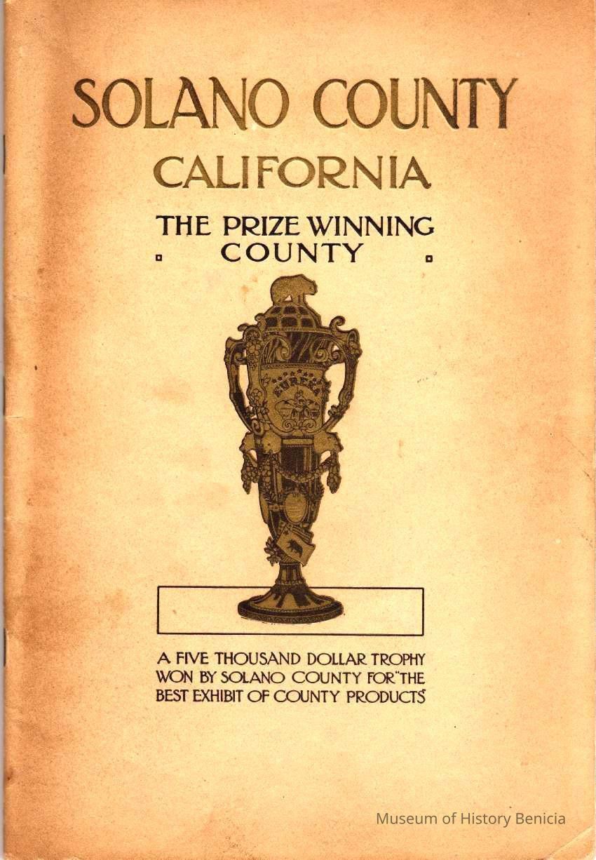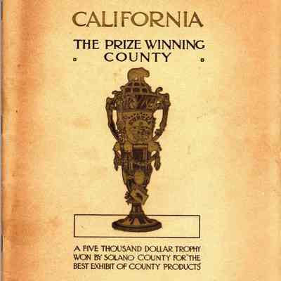 Book published in 1915 titled "Solano County California" The Prize Winning County. It commemerates our winning a trophy won by Solano for the best exhibit of county products. It shows our trophy from the 1894 Mid-Winter Fair of 1894. Published by Sunset Magazine Service Bureau.Collection