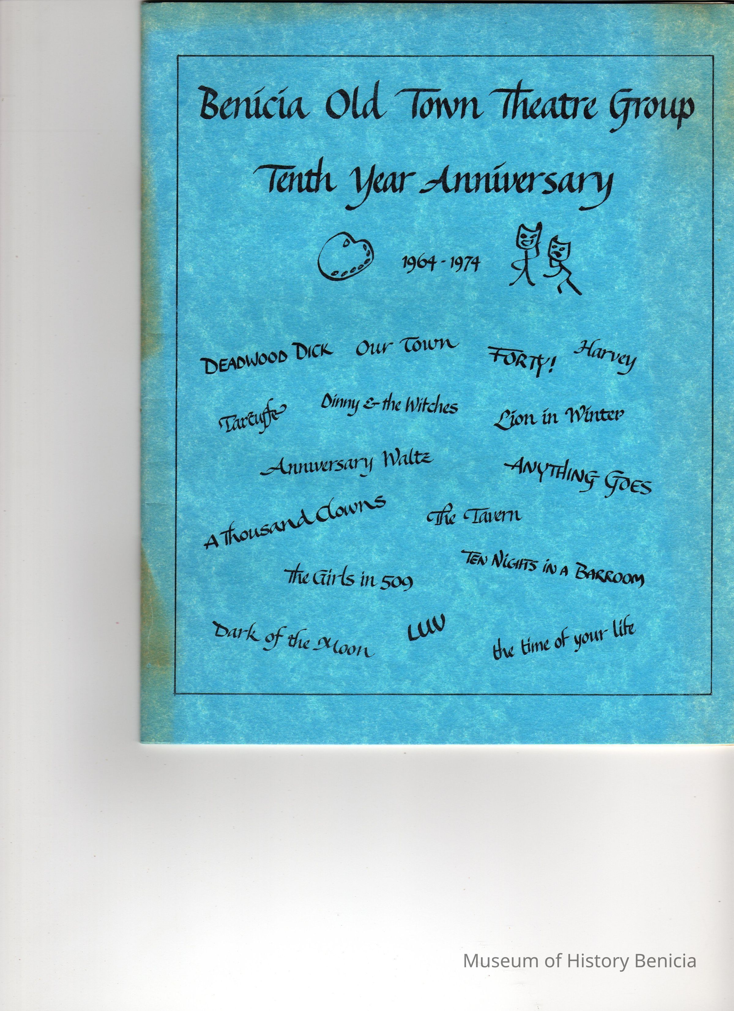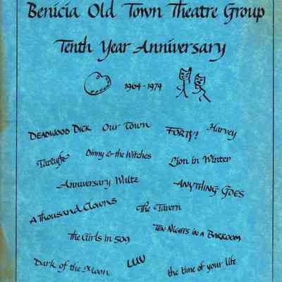 Blue cover with black writing of the names of all the shows performed during the stated time period.