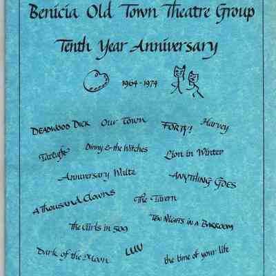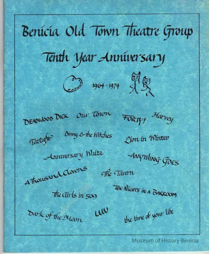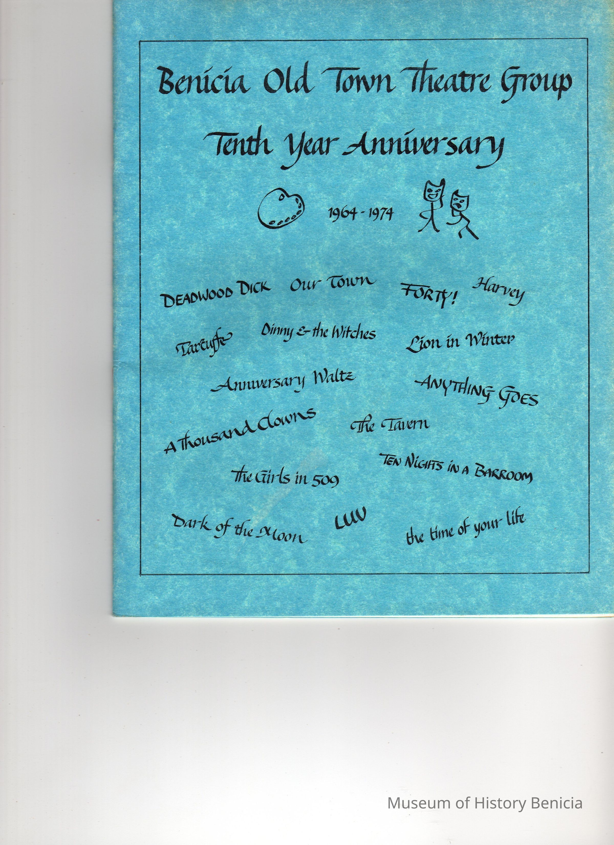 Blue cover with black writing of the names of all the shows performed during the stated time period.
