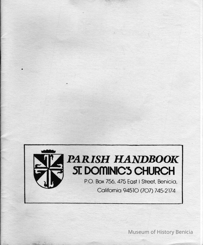 Pamphlet on St Dominic's Parish Handbook. There is no date although there is an insert dated 1985 with church pastors and a phone directory.Collection