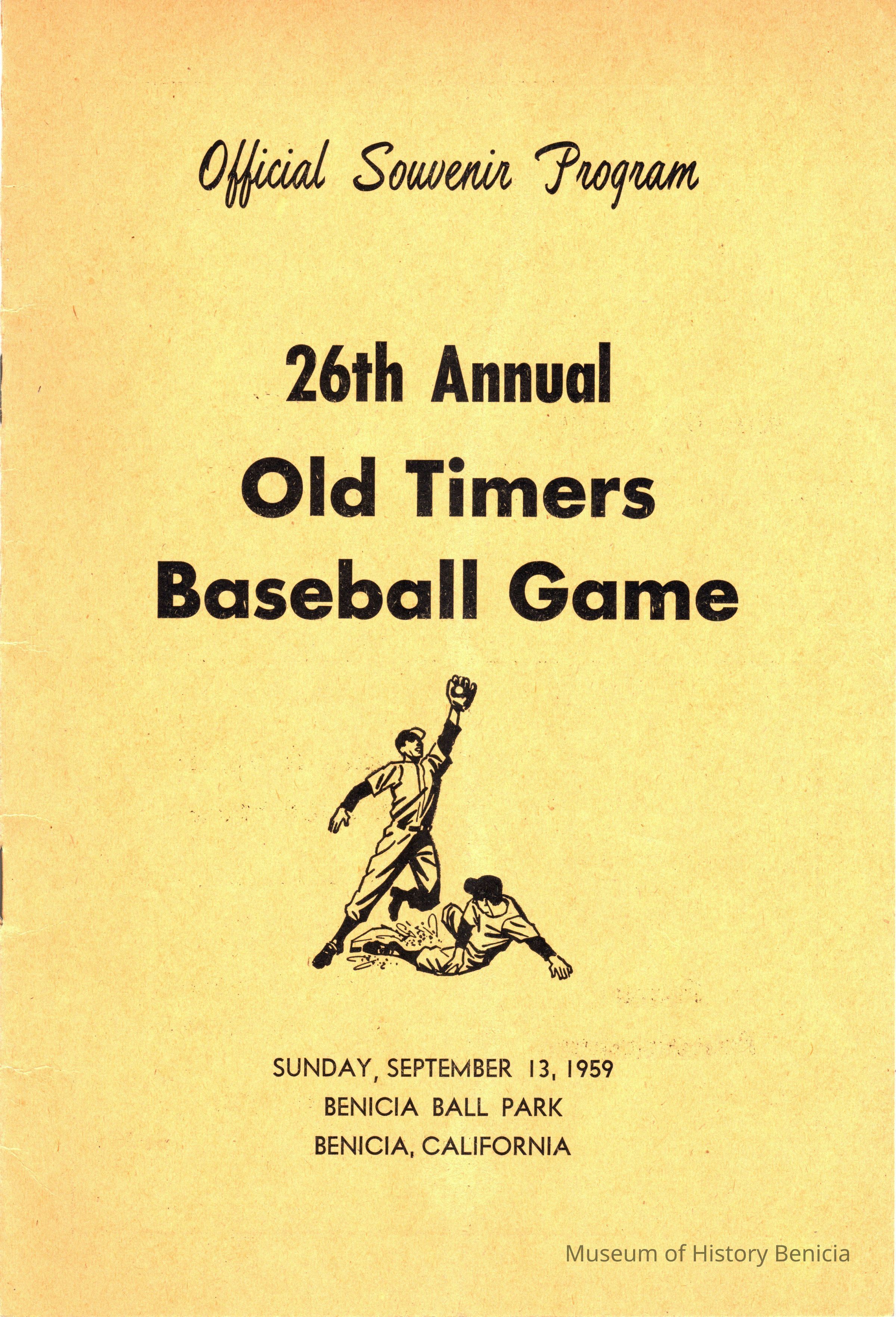 Booklett on 26th Annual Old Timers Baseball Game. The Old-Timers vs the Oakland Old Timers. Official Souvenir Program 09/13/1959.