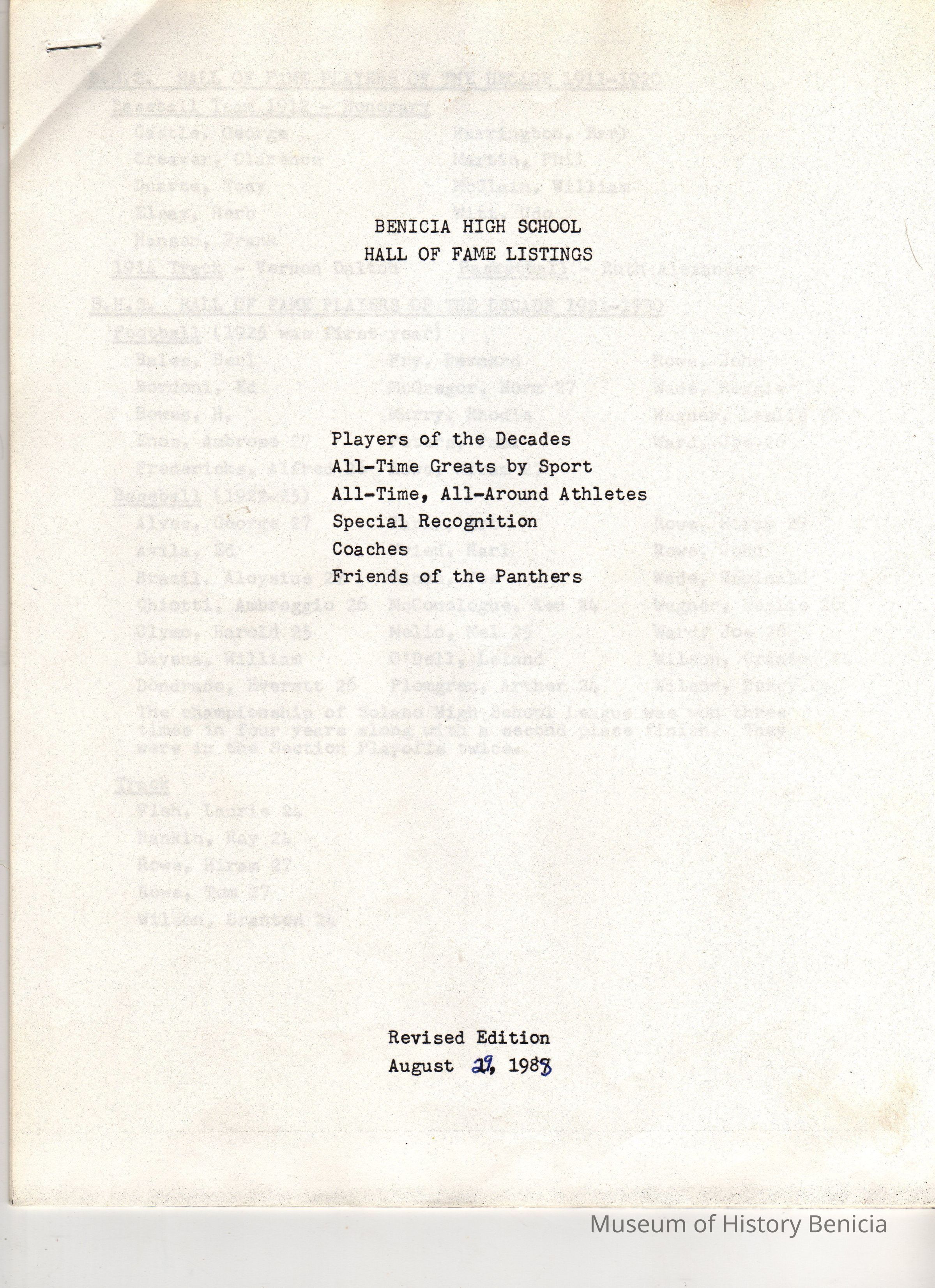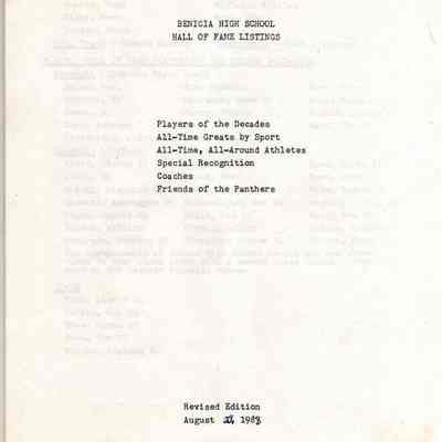 Booklet - Benicia High School Hall of Fame Listings