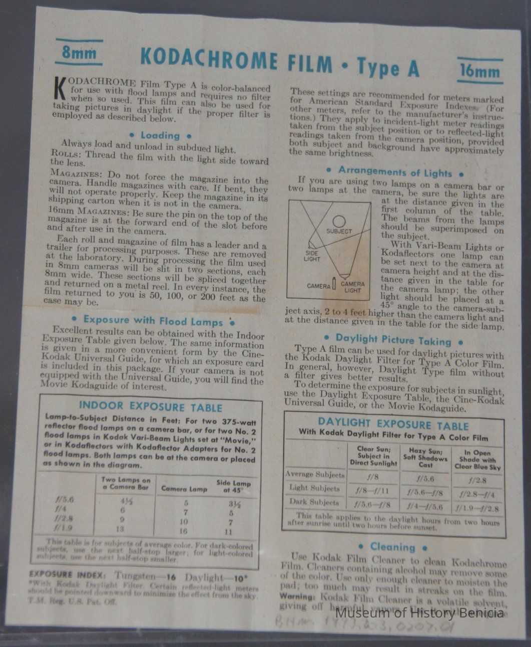 Film insert for yellow Cine-Kodak Kodachrome box with safety color 16mm film type A for artificial light. Inside stickers on both ends of the box that read: "Do not accept film if this seal is broken." Film is encased in a ripped foil. Patent # 2.036.378 & 2.059.834, 2.105.254, 2.124.883Collection