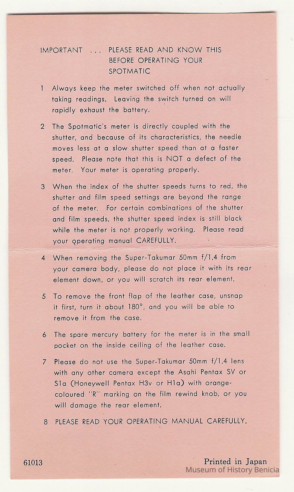 Instructions for Spotmatic flash.