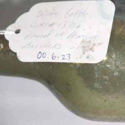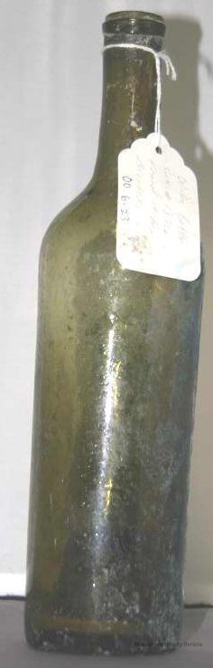 Glass bottle found at Benicia Barracks site; found near current site of the National Guard Armory on Hillcrest Avenue in Benicia.