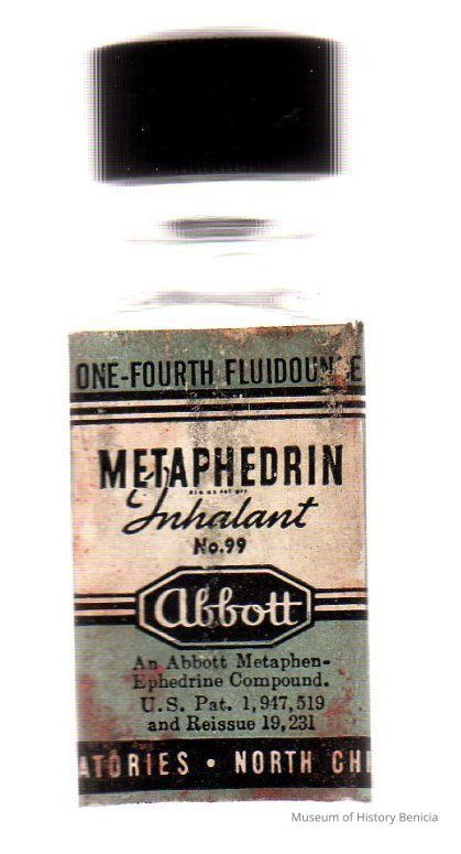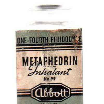 "Metaphedrin Inhalant No 99 Abbott" "List No 3599 Metaphen 1:2500, Ephedrin 1% w/w" on one side: "Do not use for infants or over long periods of time" on other side: "Sample Not to be Sold"