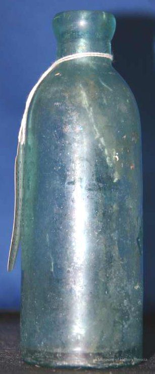 Glass bottle found at Benicia Barracks site; found near current site of the National Guard Armory on Hillcrest Avenue in Benicia. (similar to BHM00.6.27)
