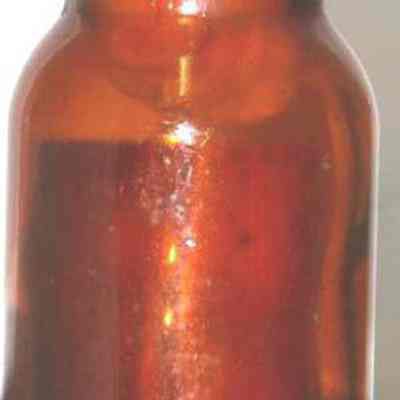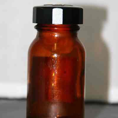 brown medicine bottle w/white label with a red border