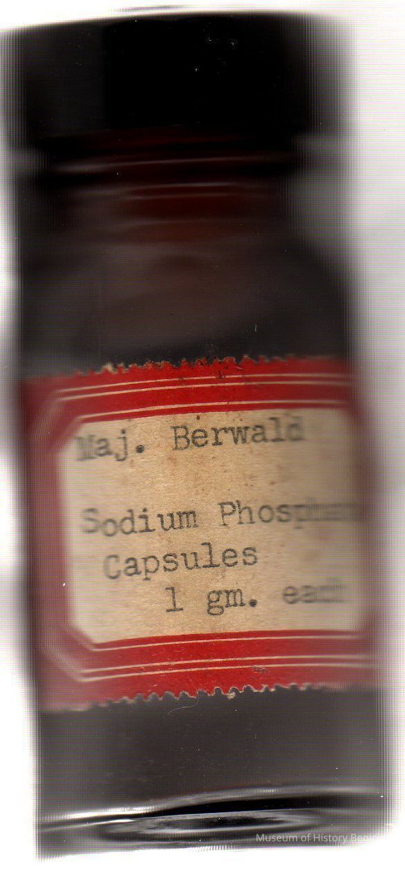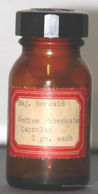 " Maj. Berwald Sodium Phosphate Capsules 1 gm each" typed on label