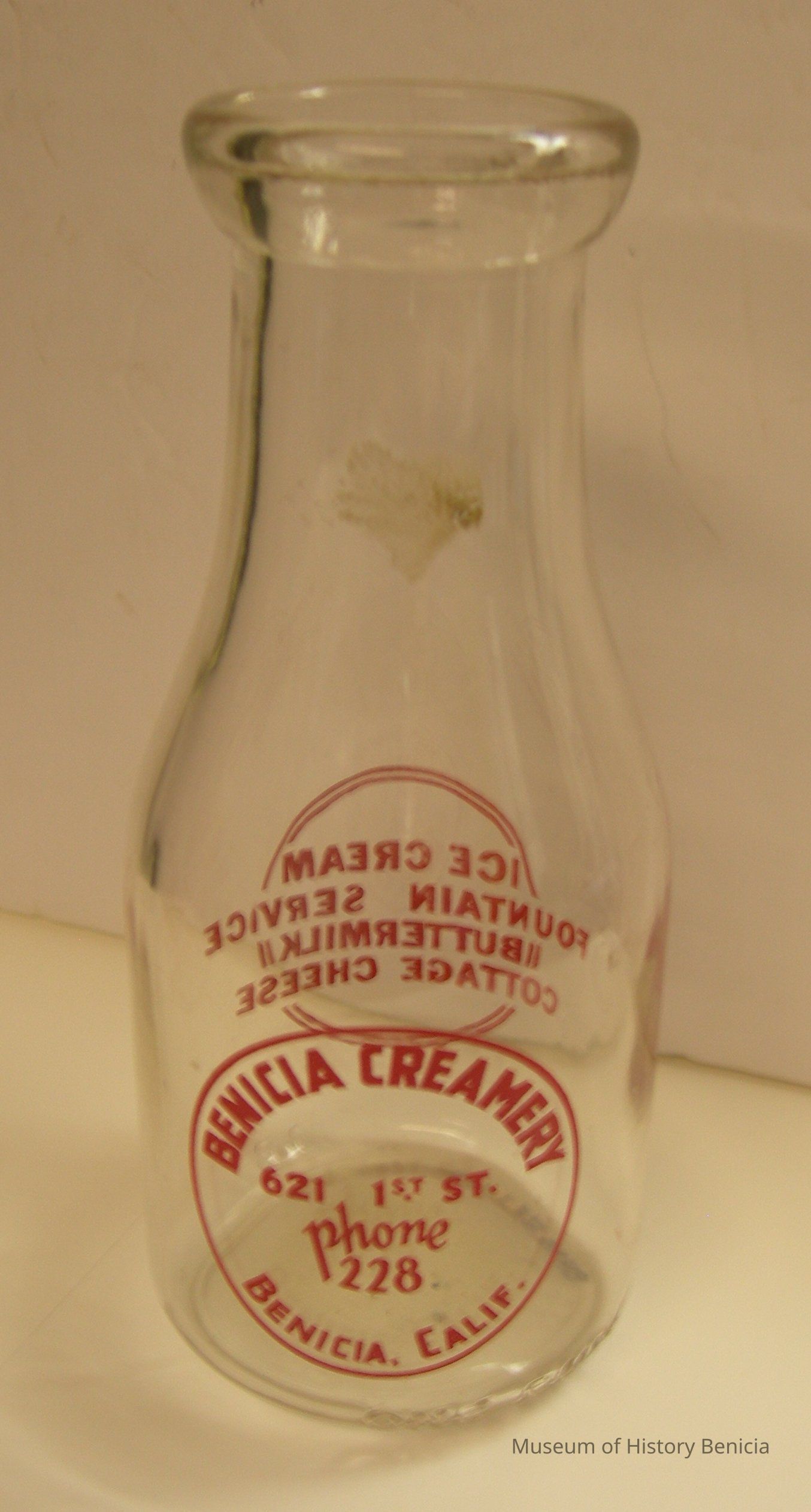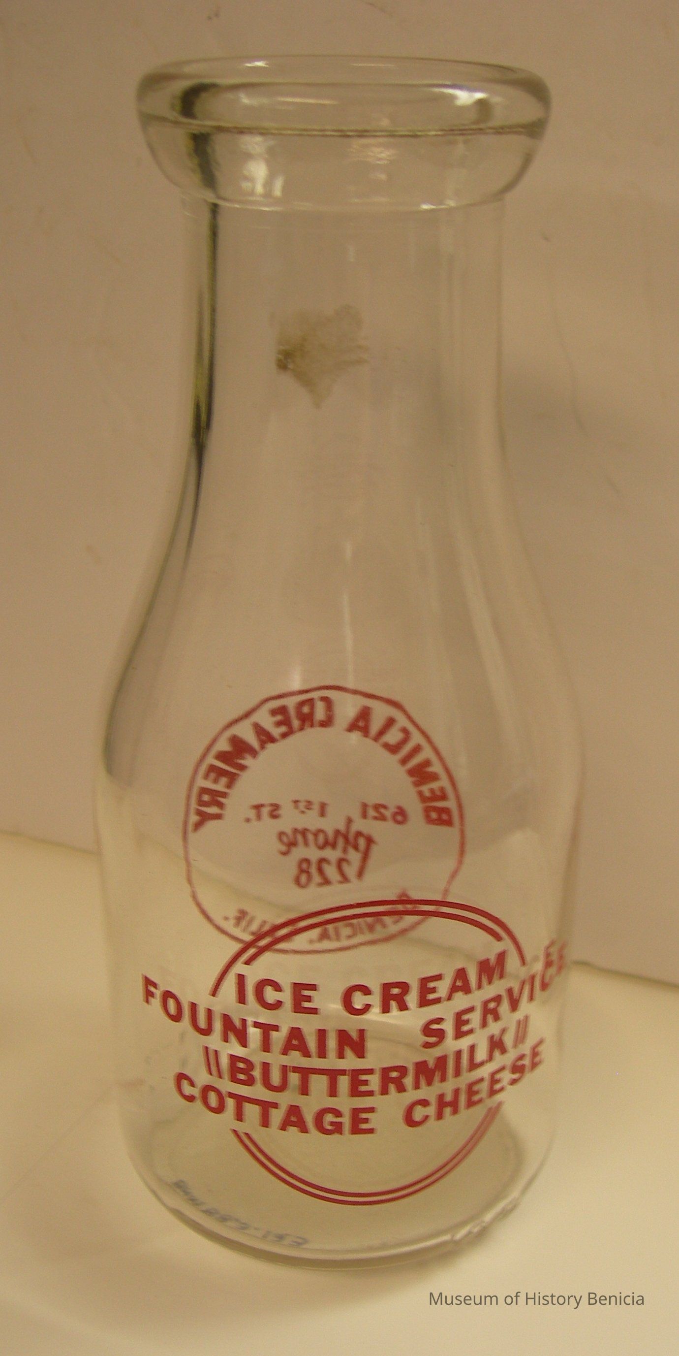front: in a circle: Benicia Creamery / 621 1st St. / phone 228 / Benicia, Calif.