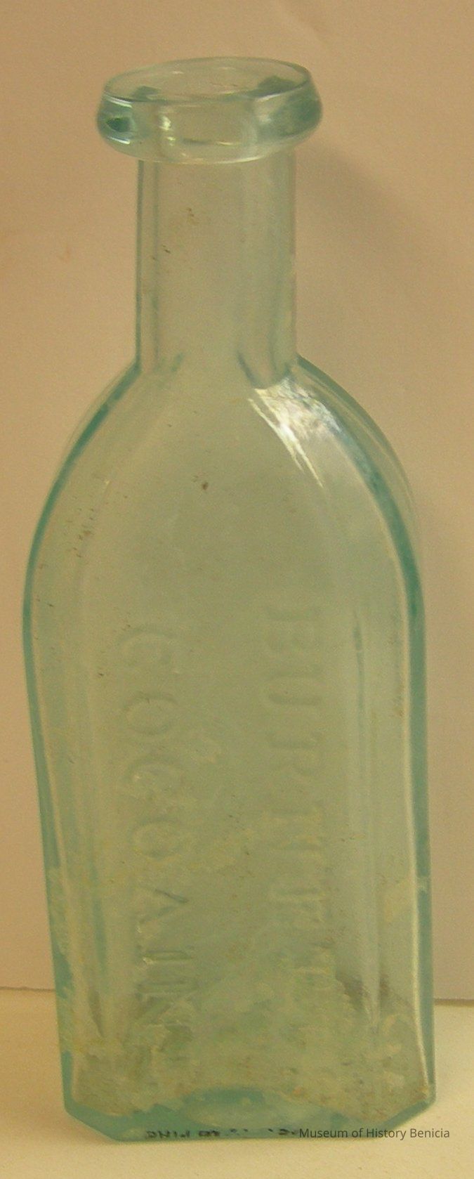Bottle - green/blue tinged; "Burnett's Cocoaine" "Boston" 7" tall x 2-1/2" wide x 1-1/2" deep, top diameter 1-1/4"