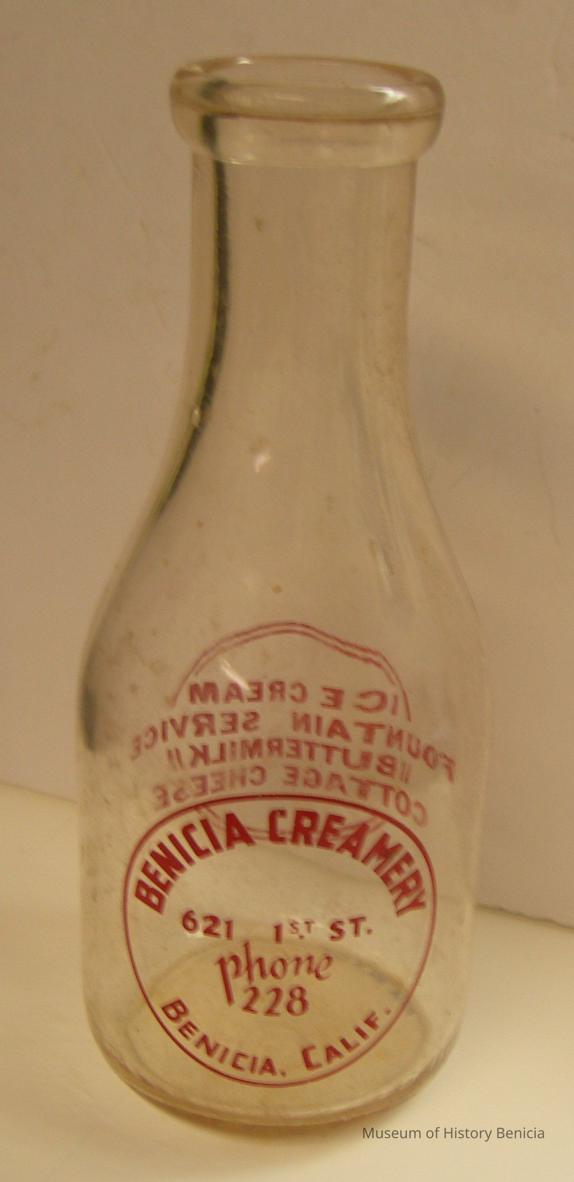 front: in circle: Benicia Creamery / 621 1st St. / phone 228 / Benicia, Calif.