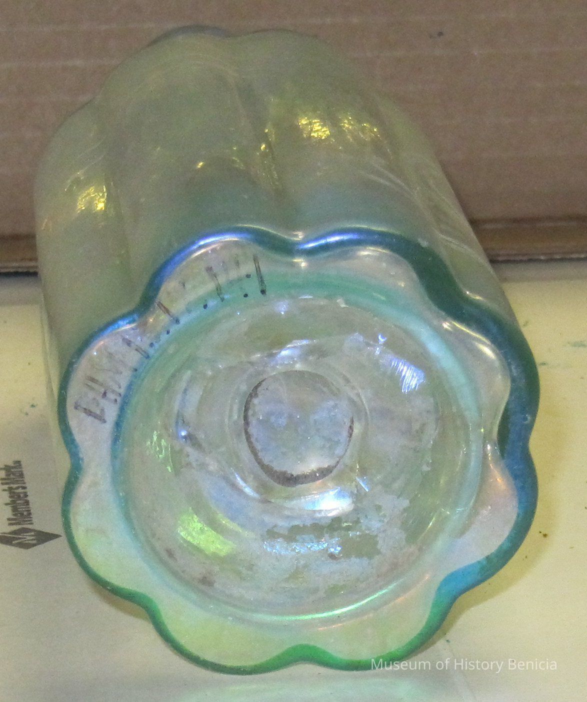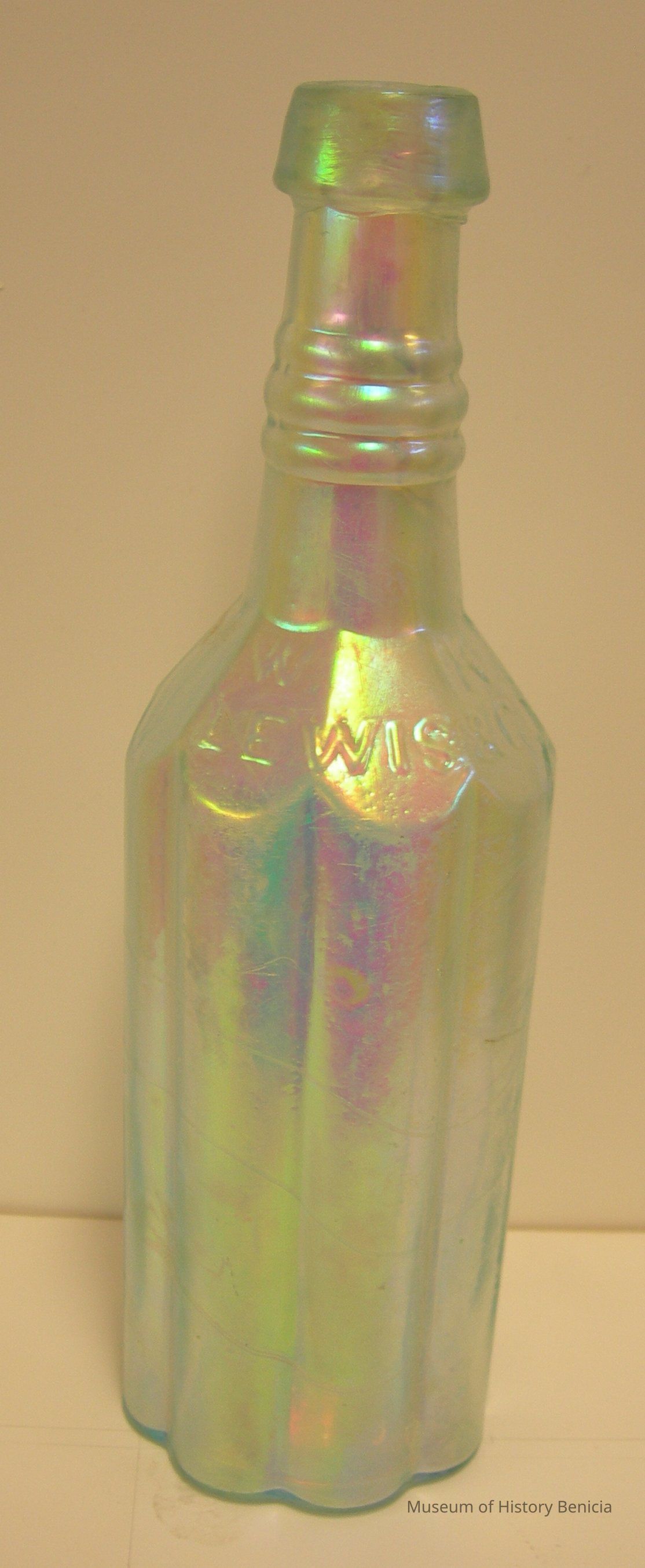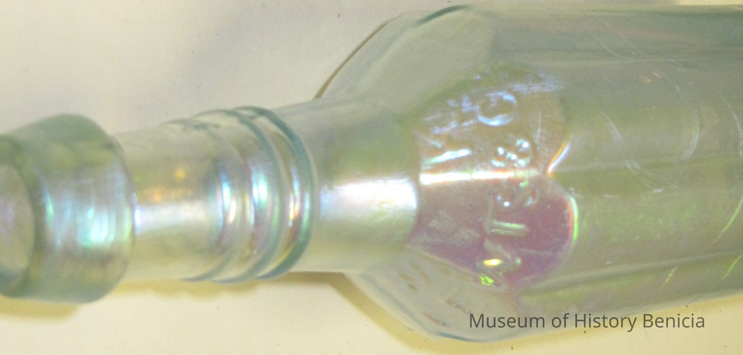 Irridescent bottle found at the end of First Street, Benicia;