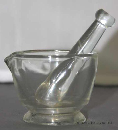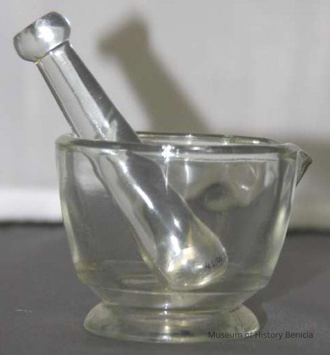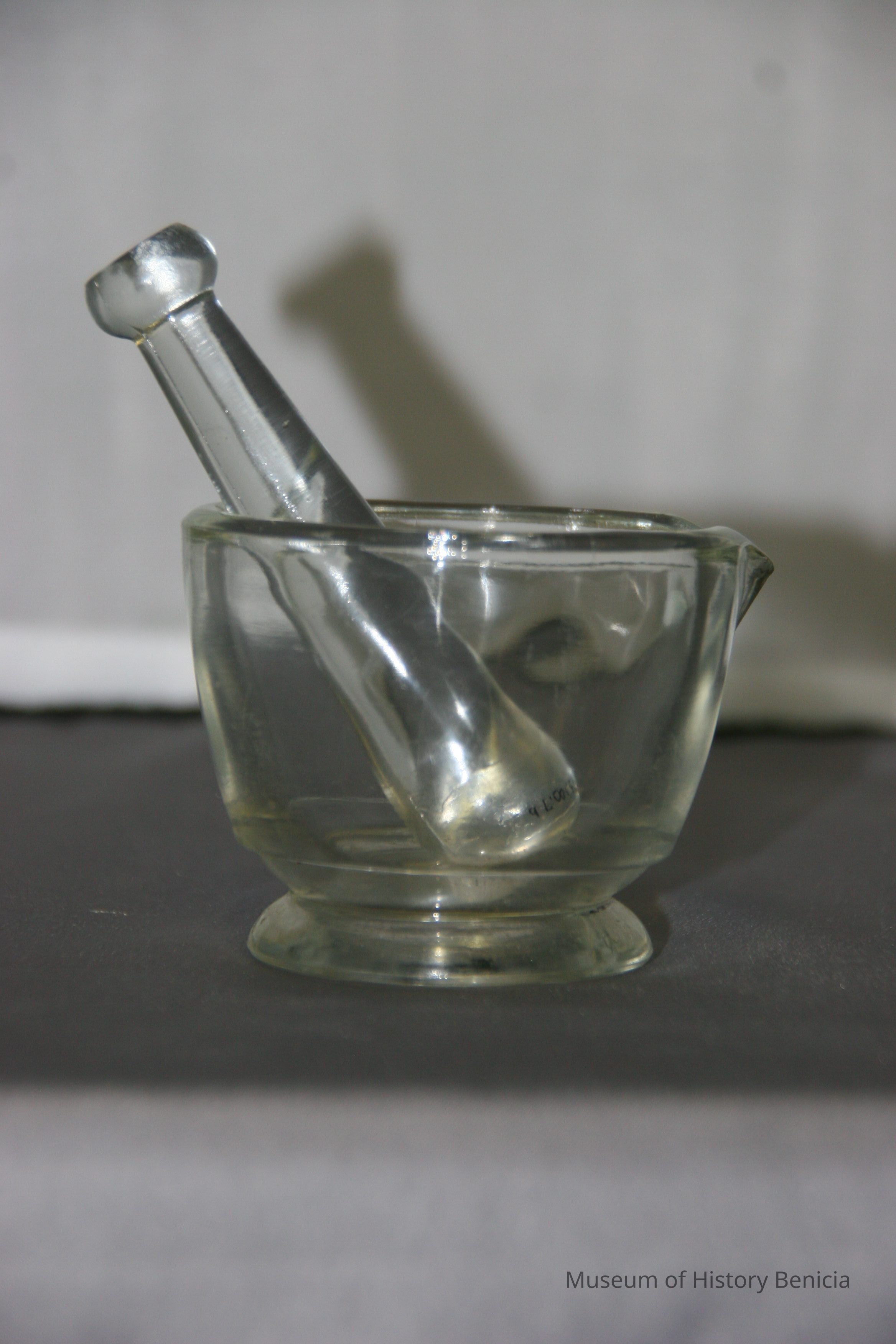 glass mortar and pestle. Each was given a separate number using a/b to separate the two objects.