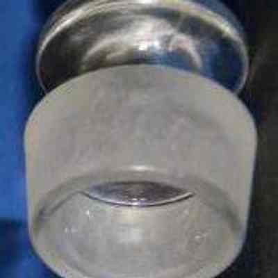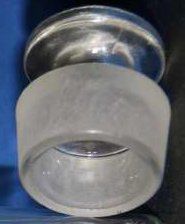 Glass stopper for a clear bottle (1993.100.0050a). 2" wide and 2.25" tall stopper only.