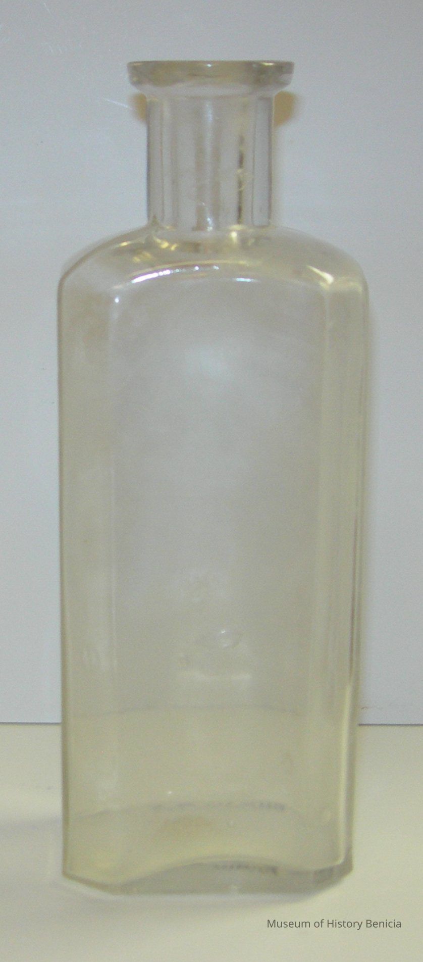 Clear glass medicine-type bottle, 8 sided
