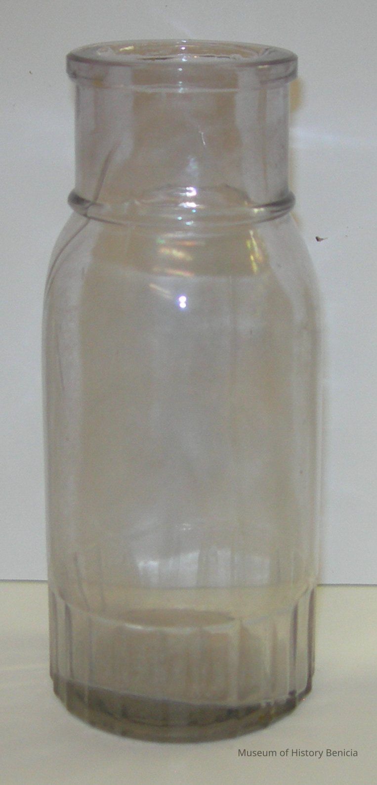Clear glass round bottle (with a slight tinge of purple from sun exposure)