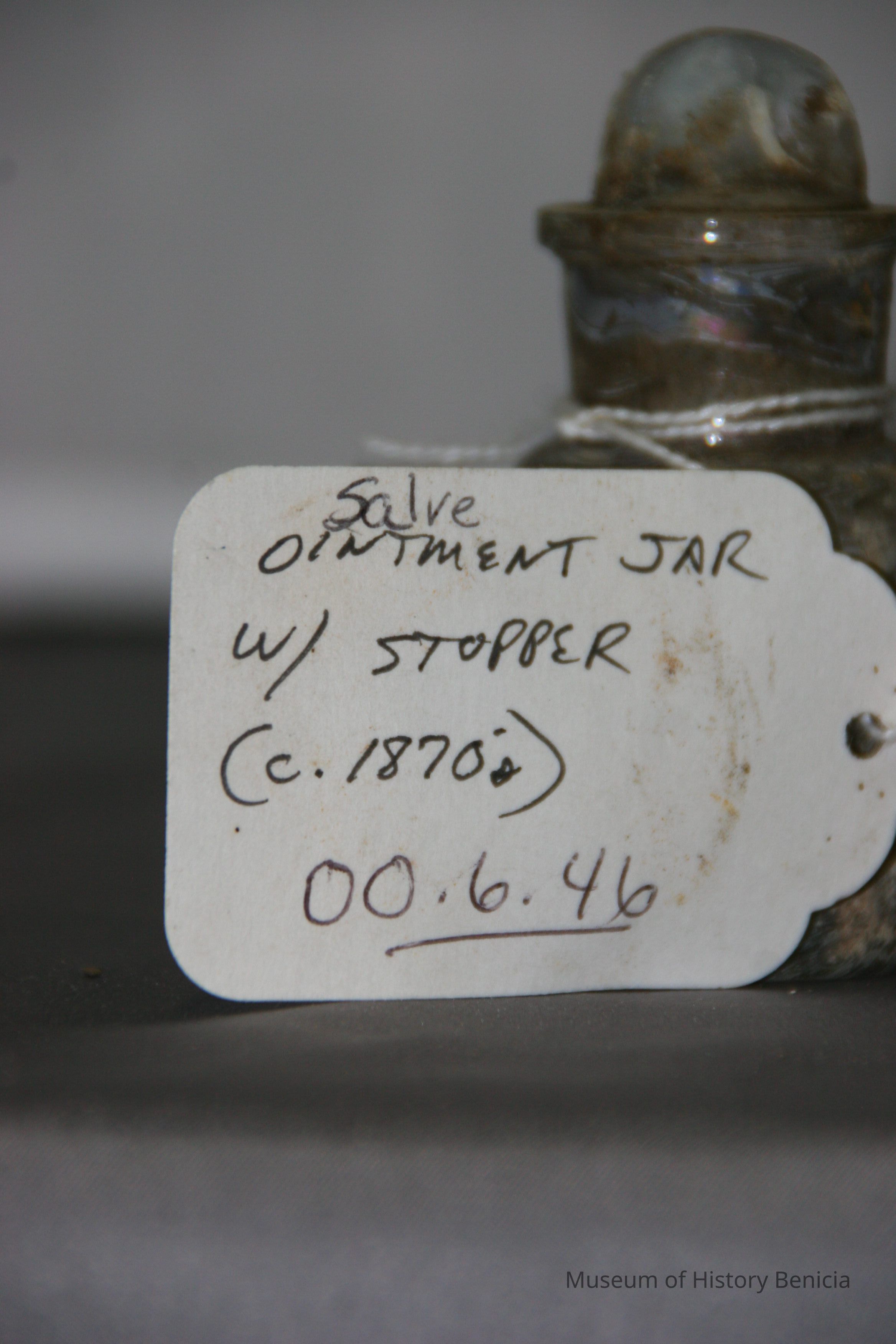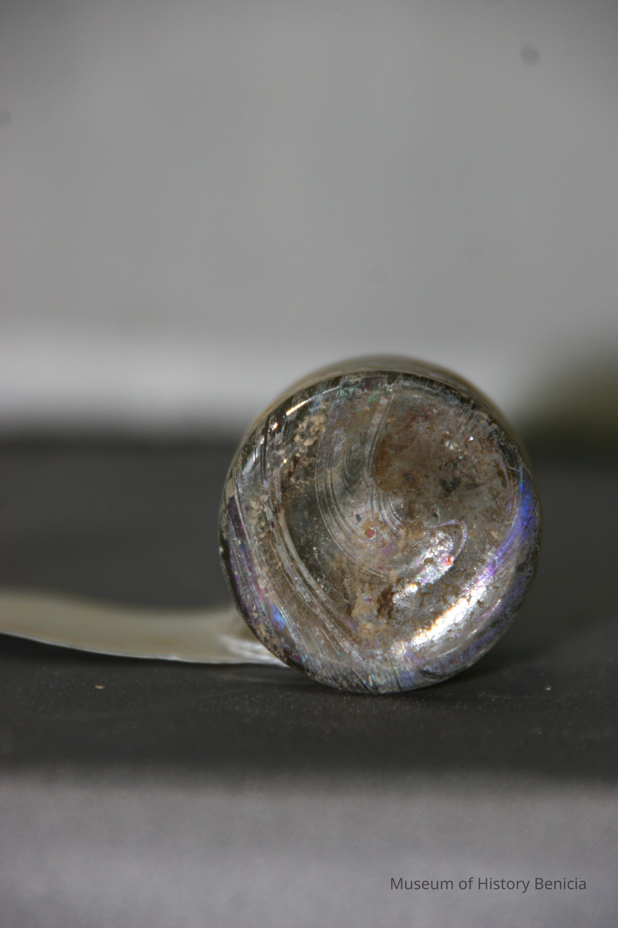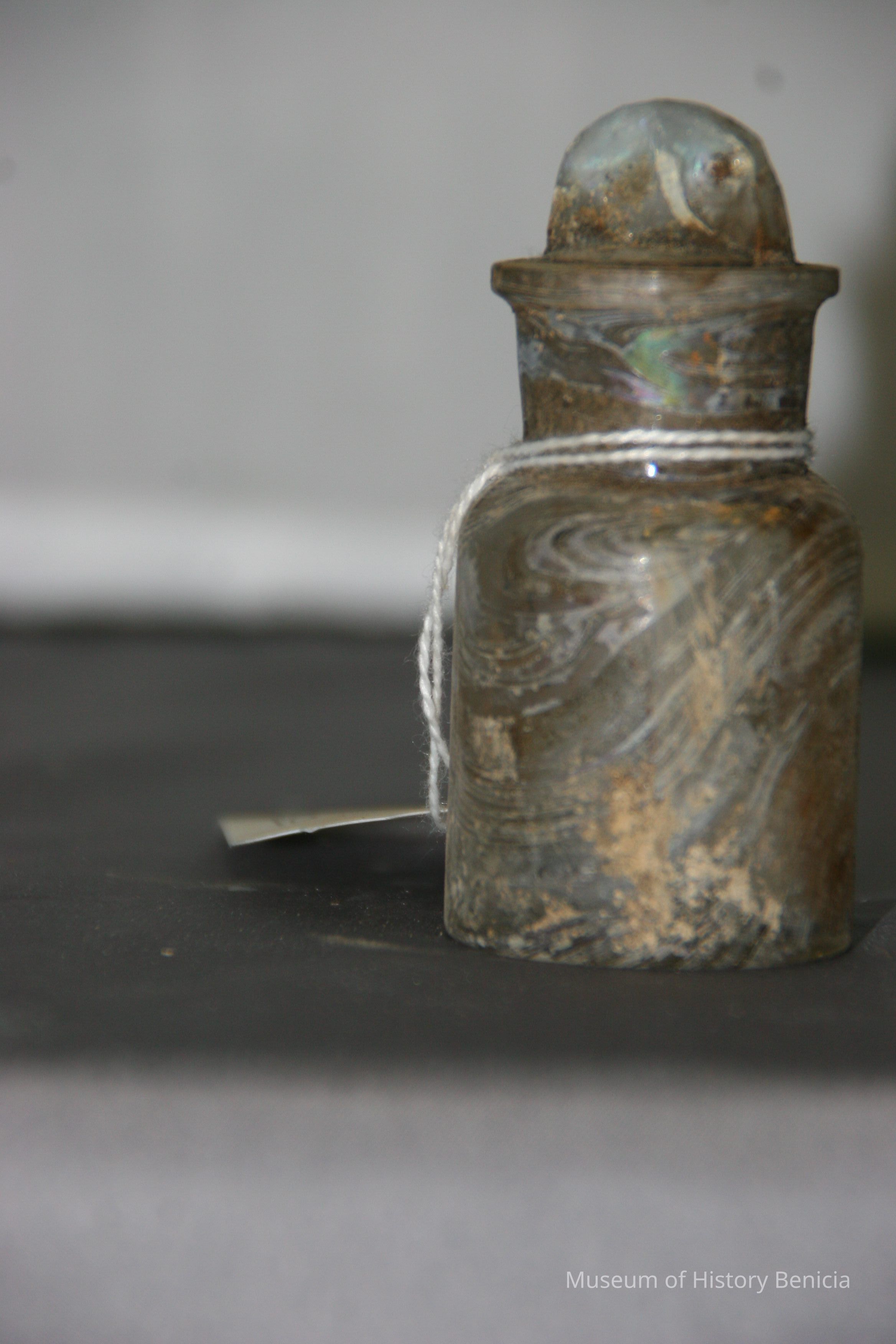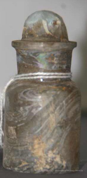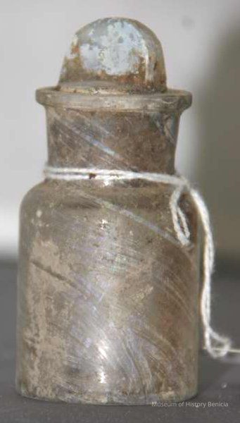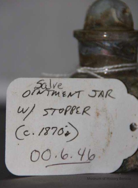 Glass jar found at Benicia Barracks site; found near current site of the National Guard Armory on Hillcrest Avenue in Benicia.