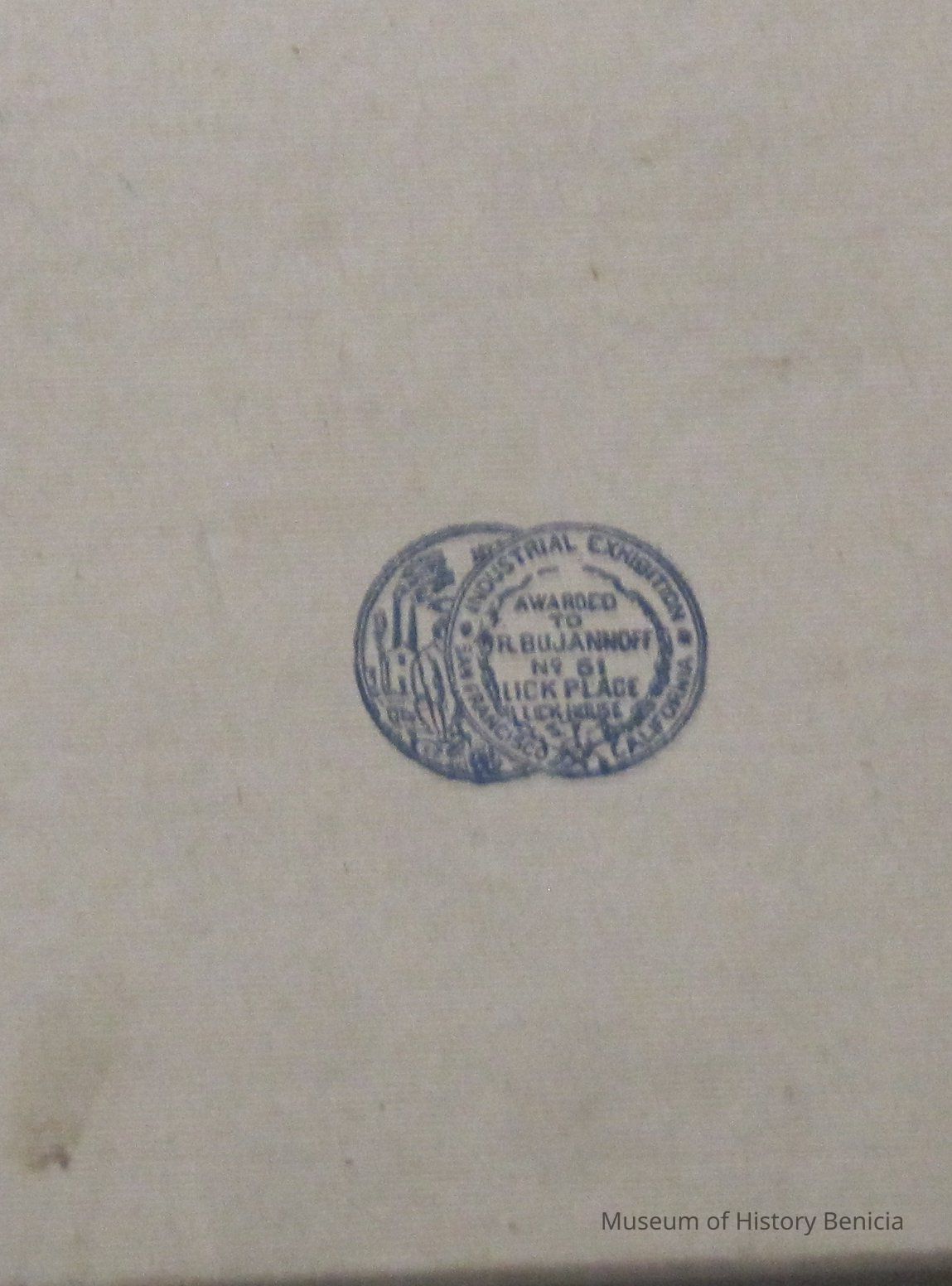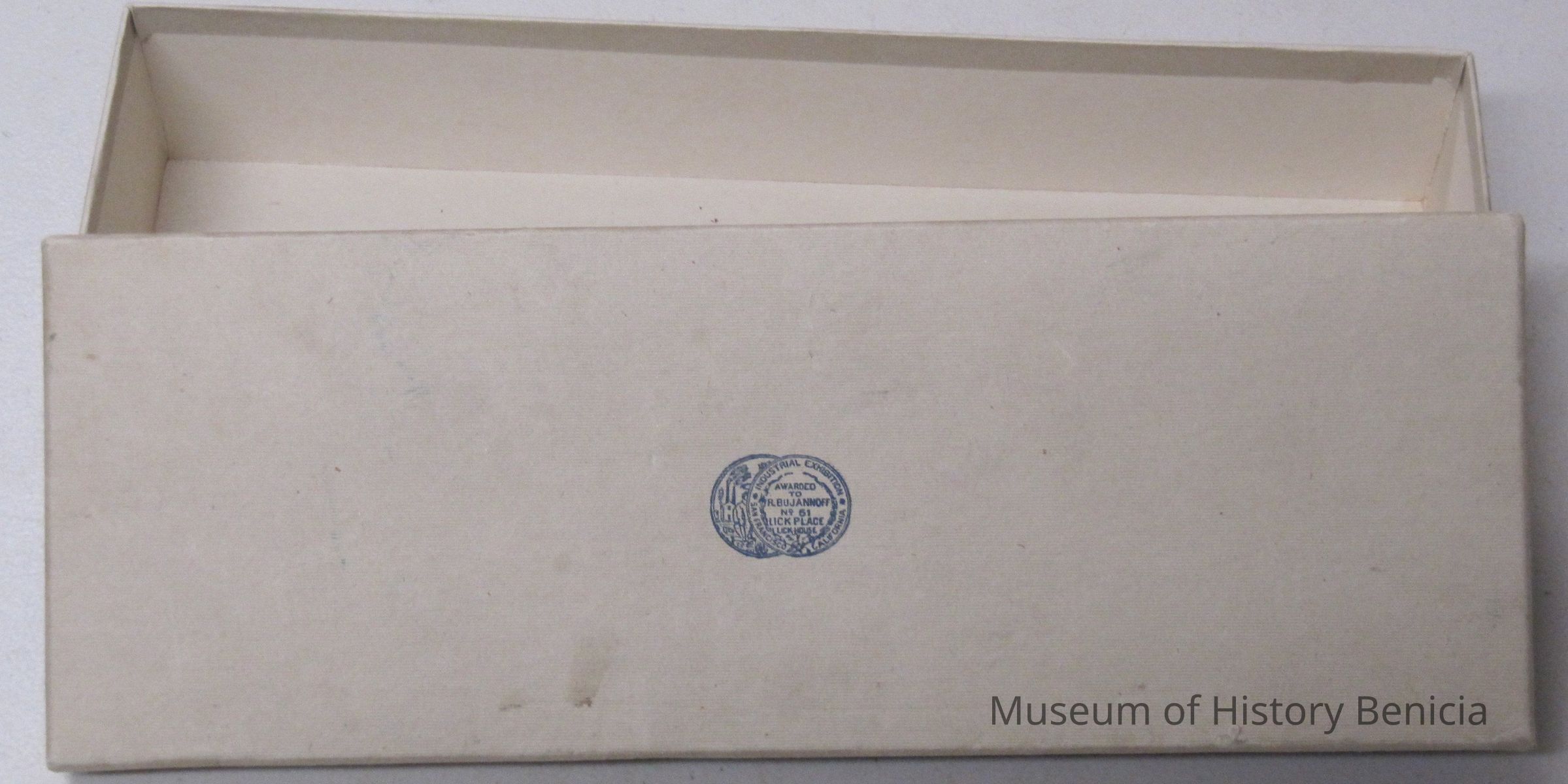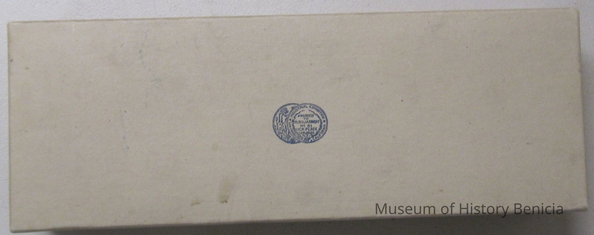 Box - cardboard from the San Francisco Industrial Exhibition awarded to R Bu Jannoff No 51 Lick Place Lick-House.