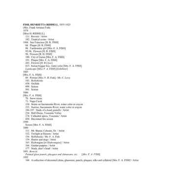 Attached is a list of items that Ms. Hemrietta Riddell Fish submitted to the Mechnic's Institue competitions.Collection