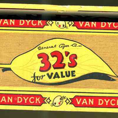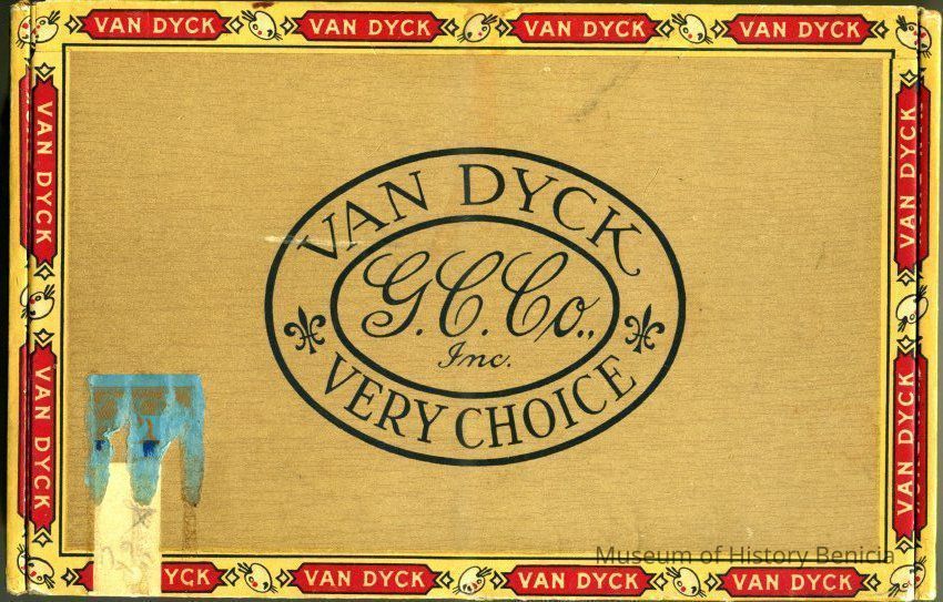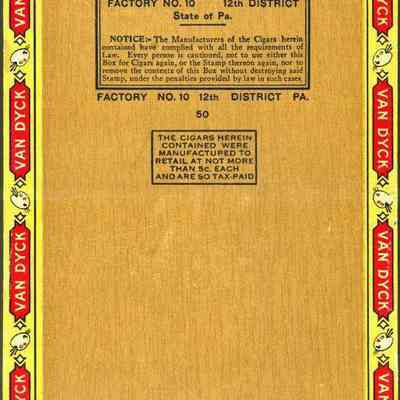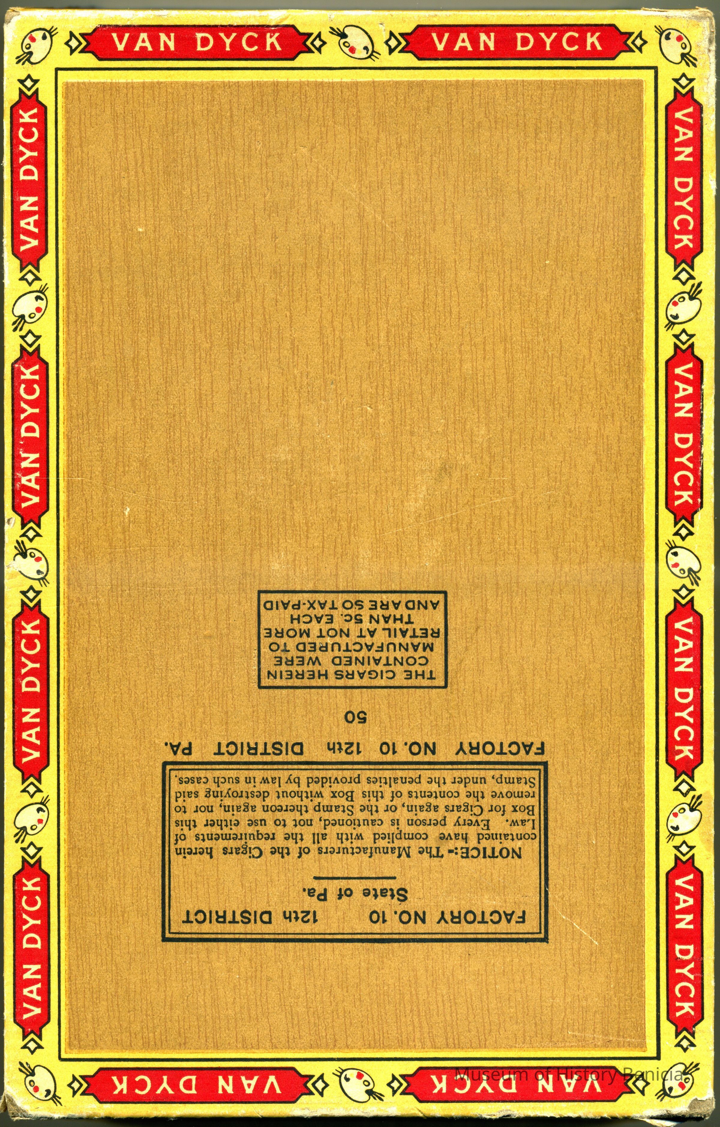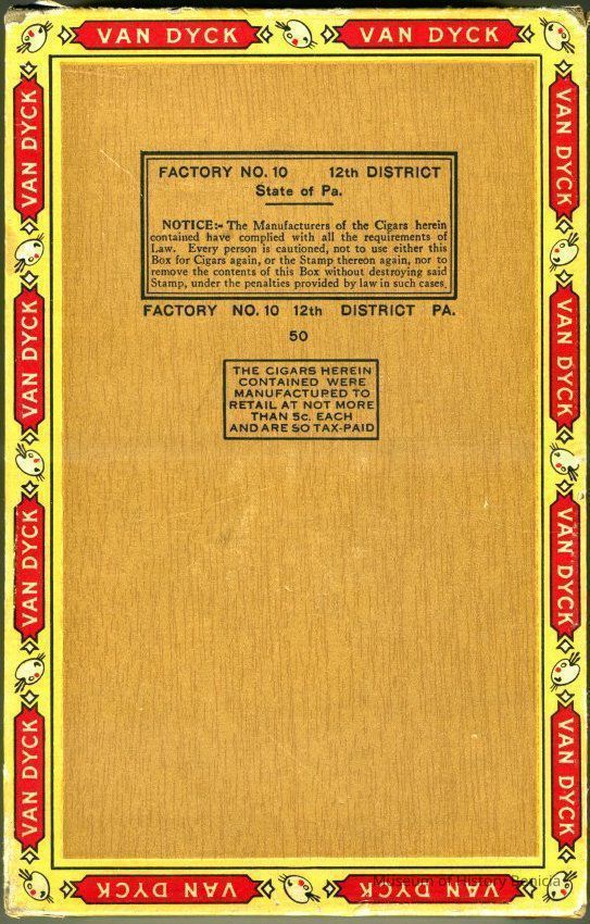 This is a cardboard cigar box. Itheld Van Dyck Very Choice cigars at one time. On the side the variety is shown as Mild-Claro. The bottom shows it was made in Pennsylvania by the General Cigar Co. These are the 5 cent cigars.Collection