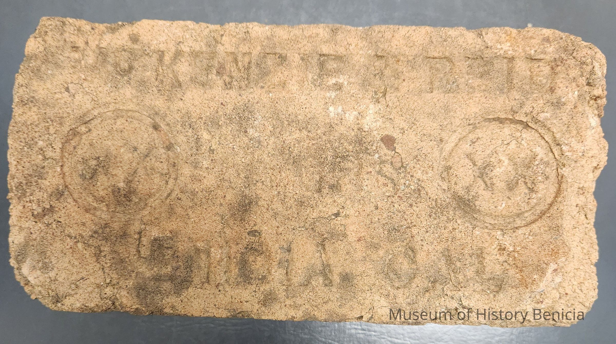 Pale yellow rectangule brick imprinted on one side:
