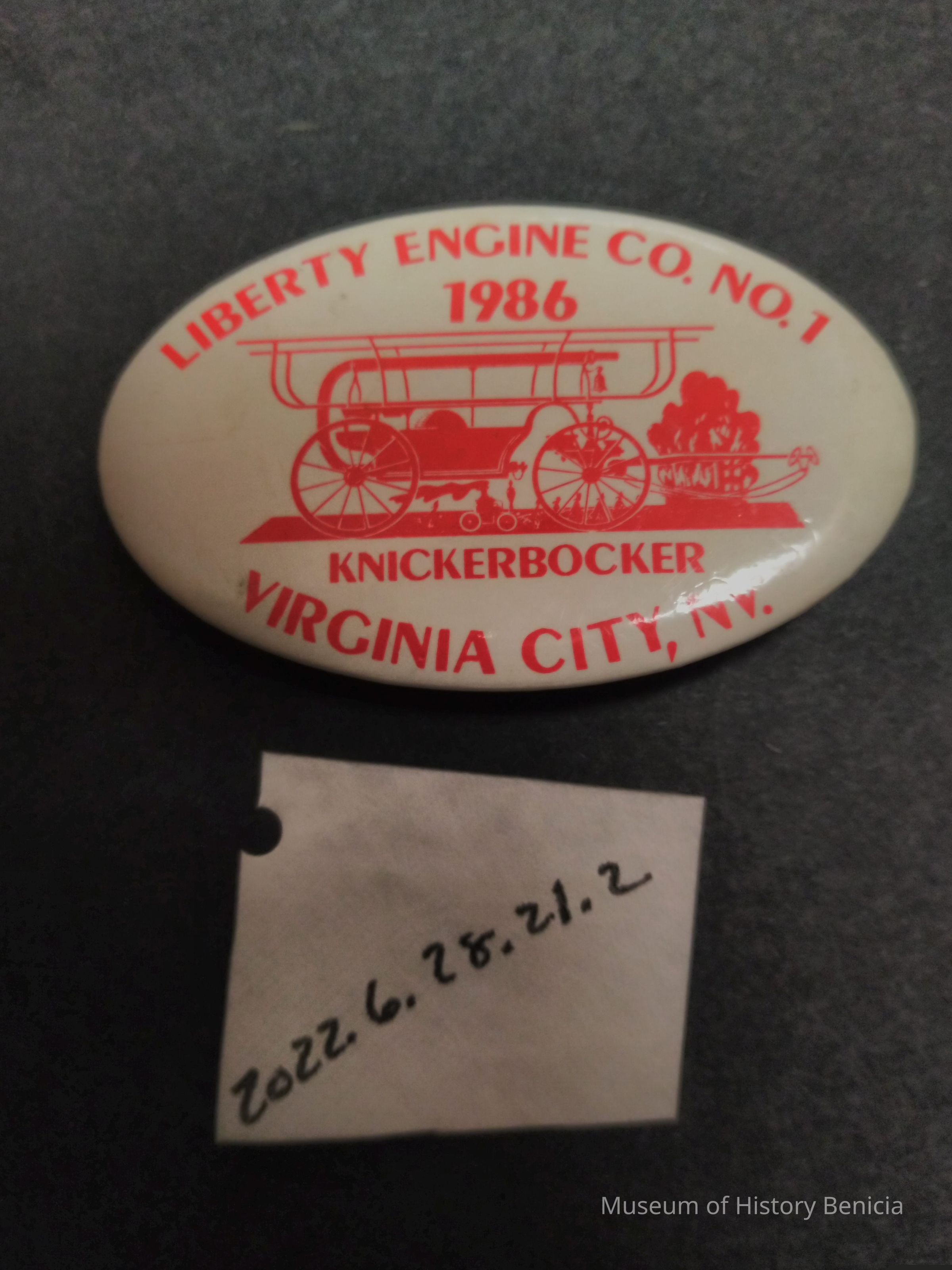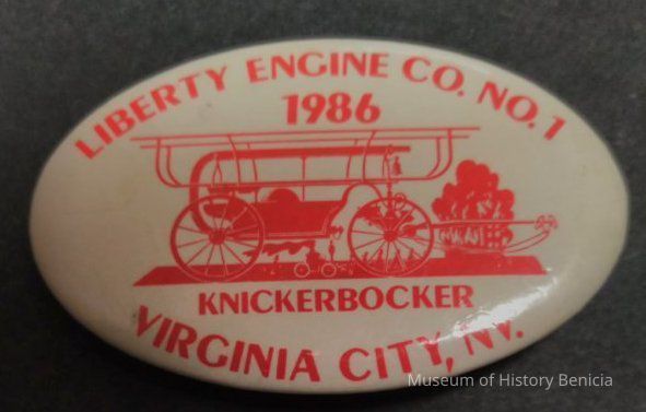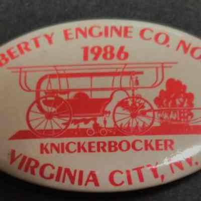 Red and White Muster Pin - Liberty Engine Co. No. 1 1986 - Kinckerbocker Virginia City Nevada