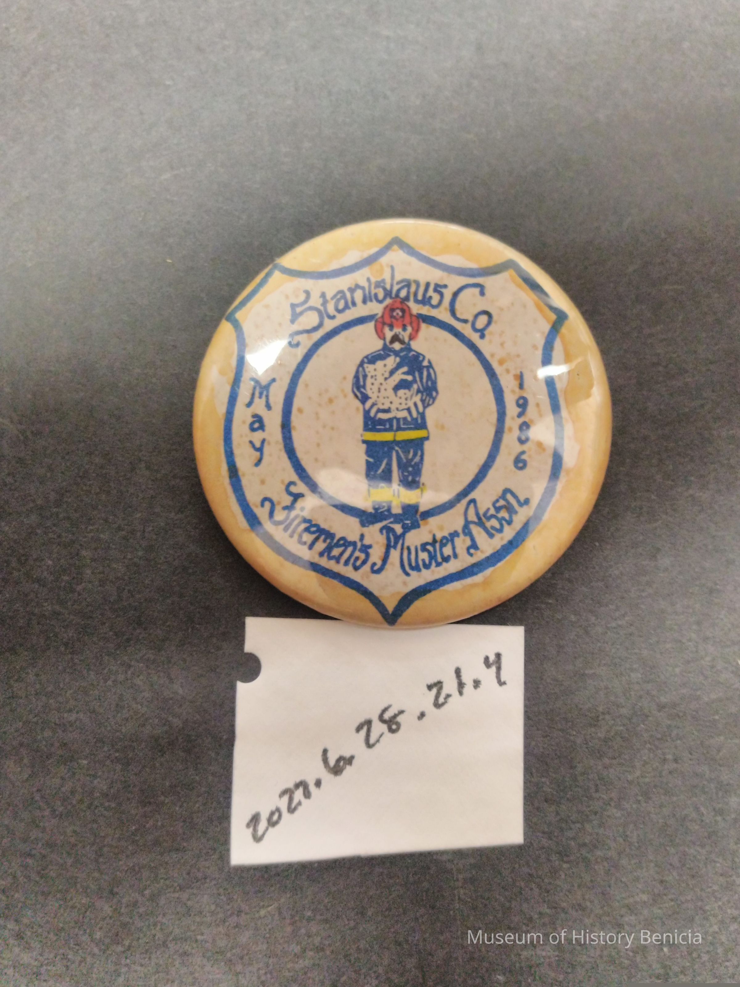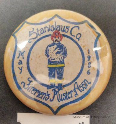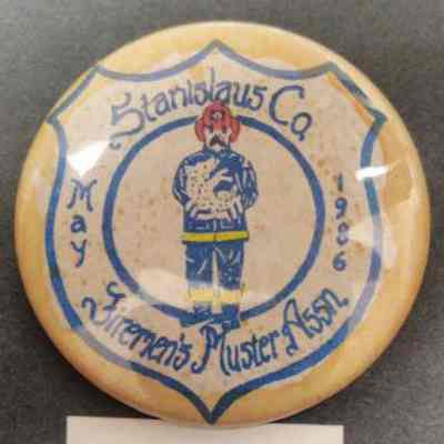 Blue and White Pin - Stanislaus Co. Firemen's Muster Assn. May 1986