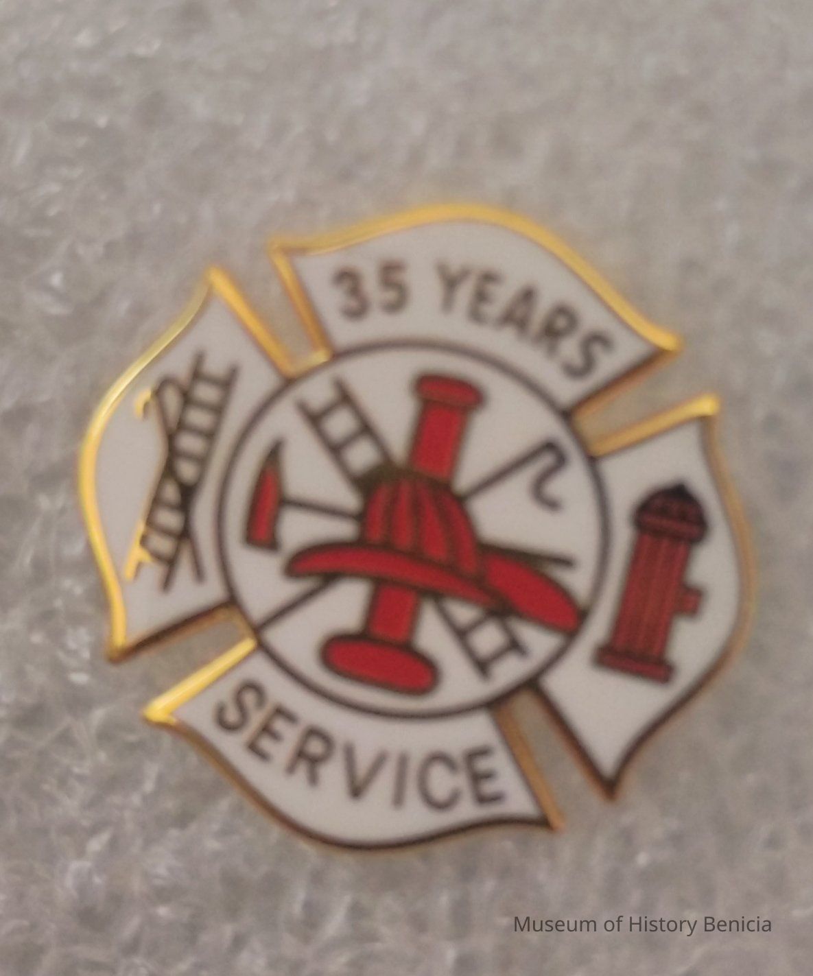 Red and White Maltese Cross Benicia Volunteer Fire Service Volunteer Recognition Pin - 35 Years of Service