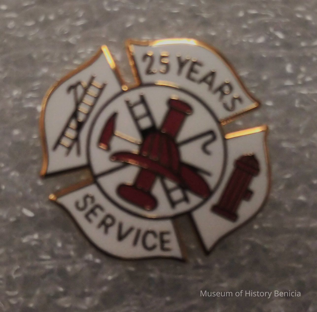 Red and White Maltese Cross Benicia Volunteer Fire Service Volunteer Recognition Pin - 25 Years of Service