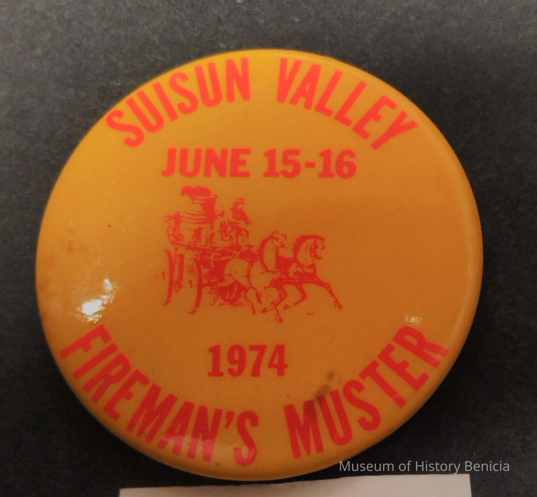 Red and Orange Suisun Valley Fireman's Muster Pin - June 15-16 1974