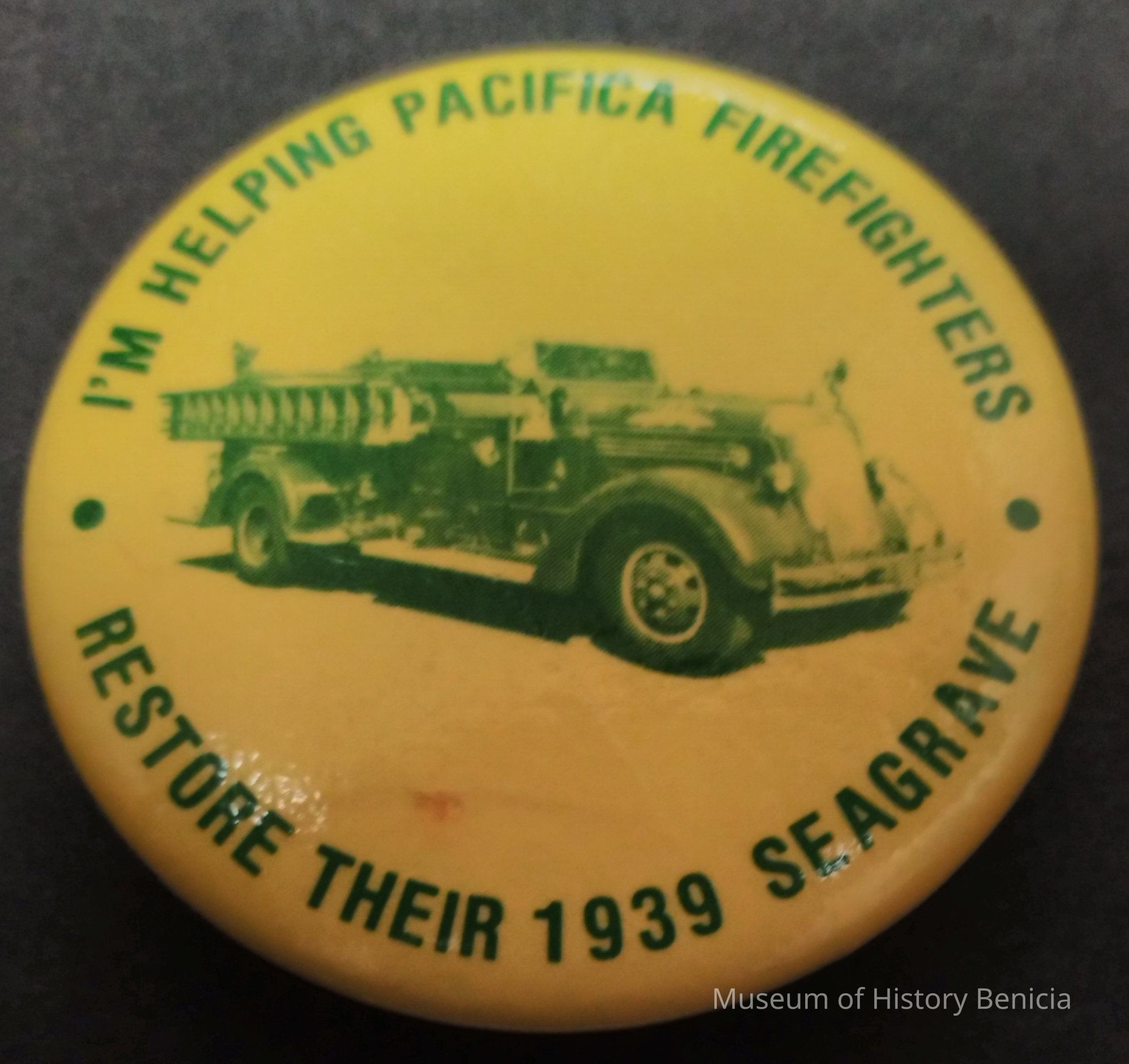 Yellow and Green Engine Restoration Commemorative Pin - I'm Helping Pacifica Firefighters Restore Their 1939 Seagrave Pin