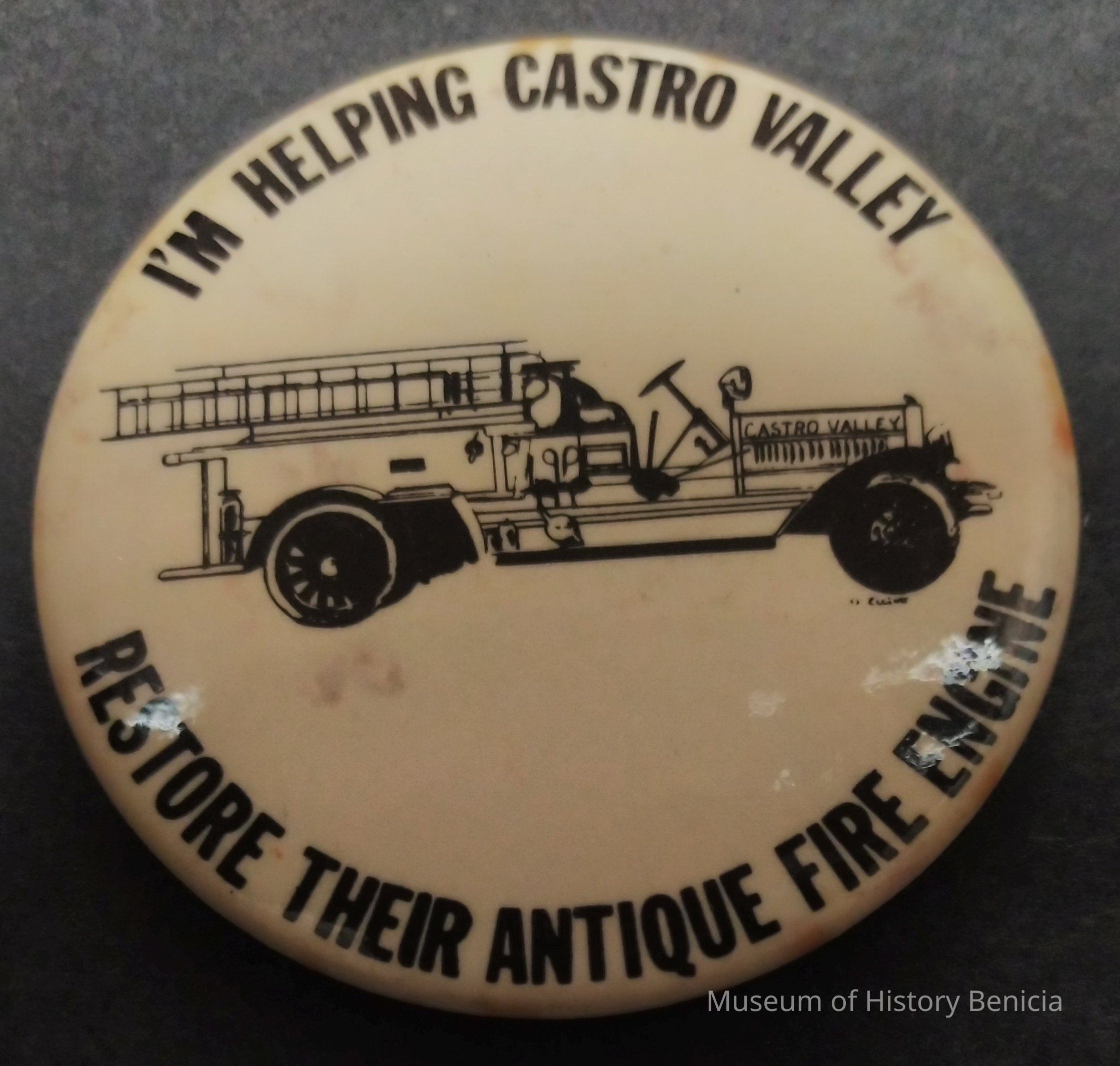 Black adn White Engine Restoration Commemorative Pin - I'm Helping Castro Valley Restore Their Antique Fire Engine