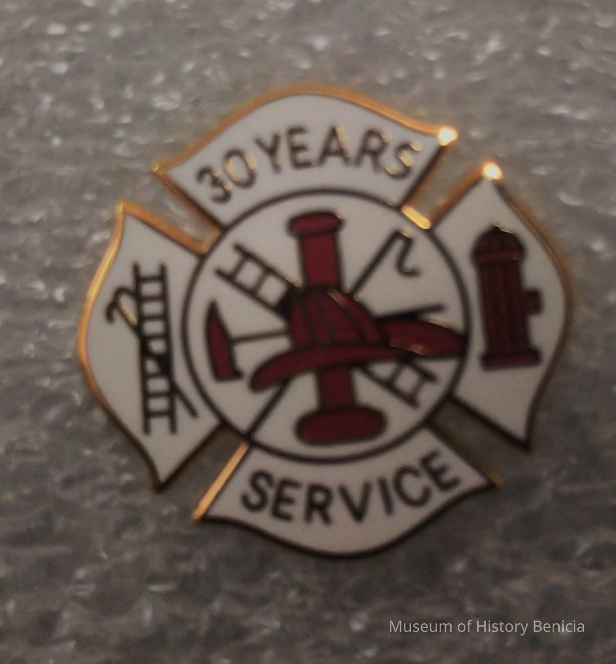 Red and White Maltese Cross Benicia Volunteer Fire Service Volunteer Recognition Pin - 30 Years of Service