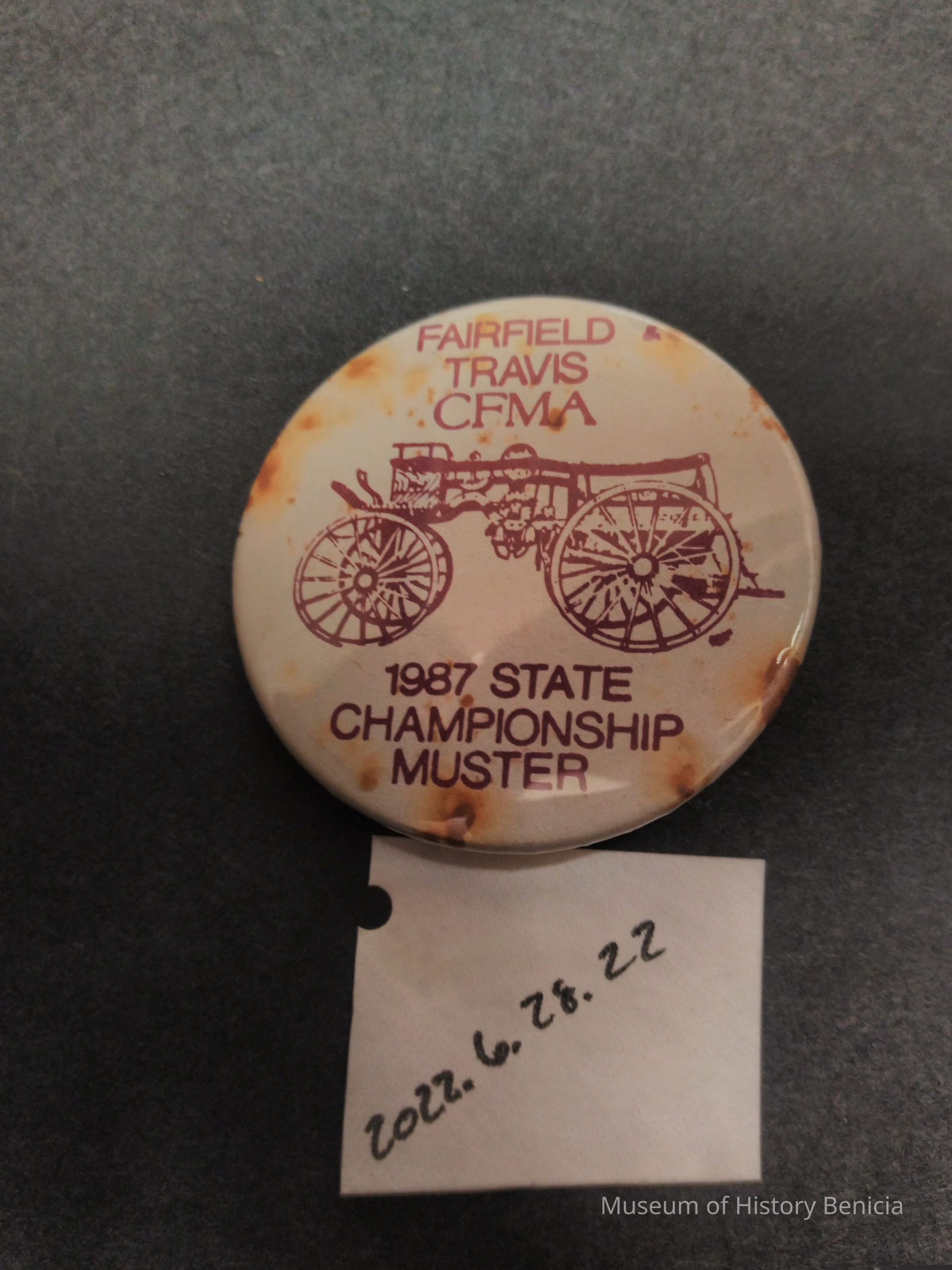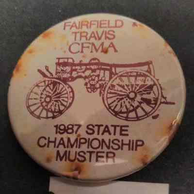 Red and White Fire Muster Pin - Fairfeld Travis CFMA - 1987 State Champion Muster