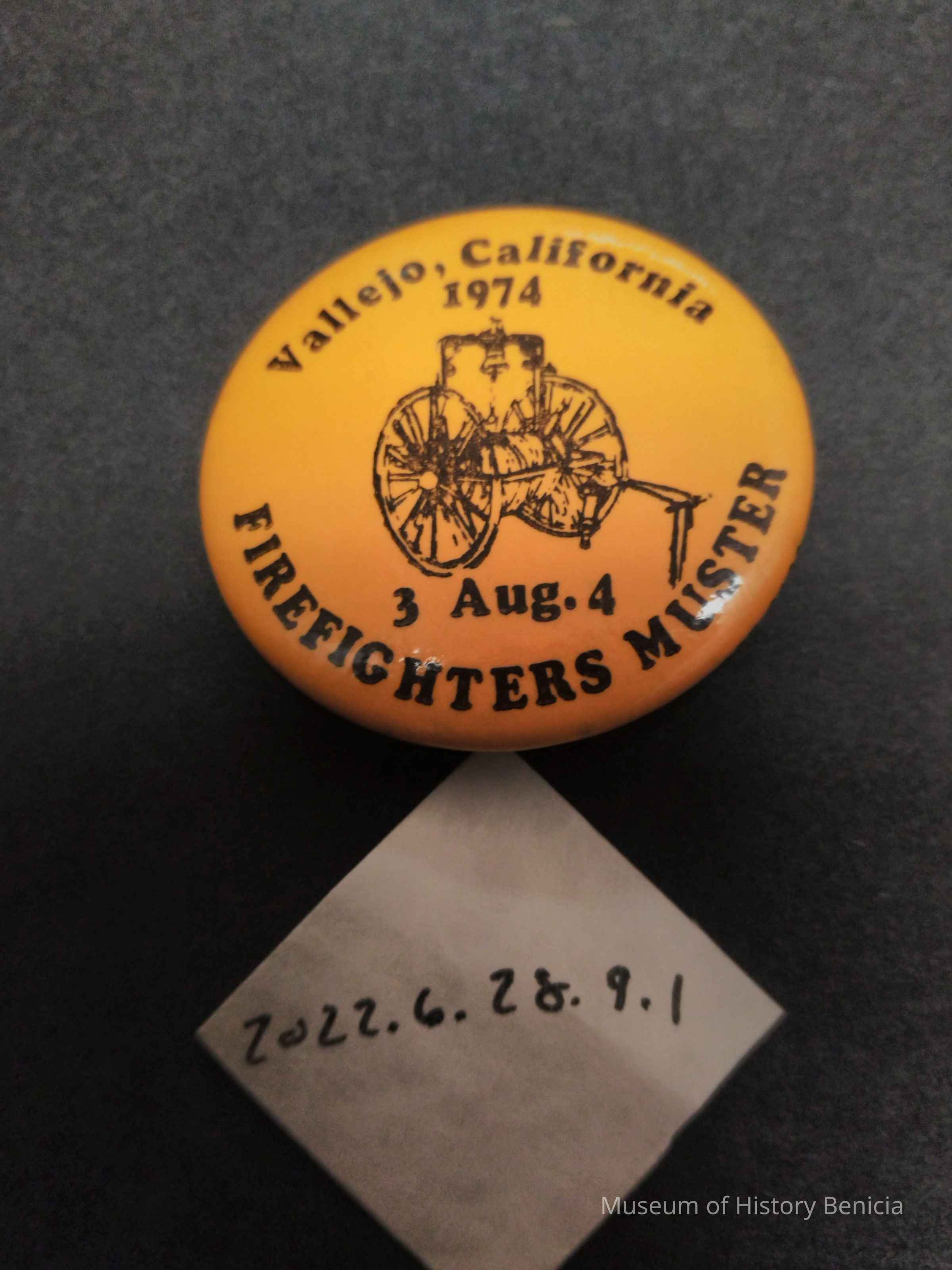 Yellow and Black Vallejo California Firefighters Muster Aug 3-4 1974 Pin