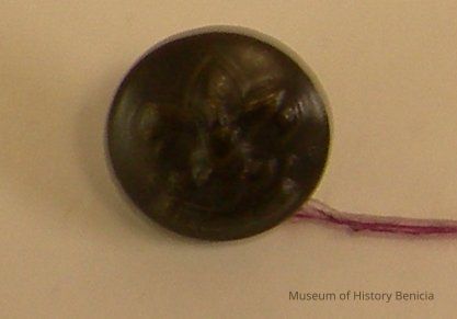 Boy Scout Uniform Button; there is a loop on the back so it can be sewn on cloth; metal 5/8" diameter round shape; brown in color, Boy Scouts Insignia and "Be Prepared" in raised lettering; the company name is indecipherableCollection