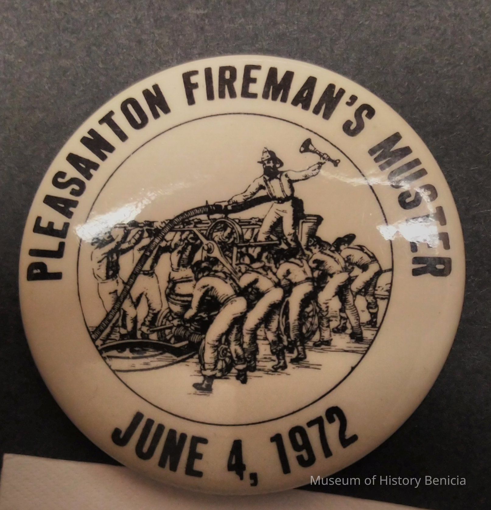 Pleasanton Fireman's Muster June 4, 1972 Pin - Black and White