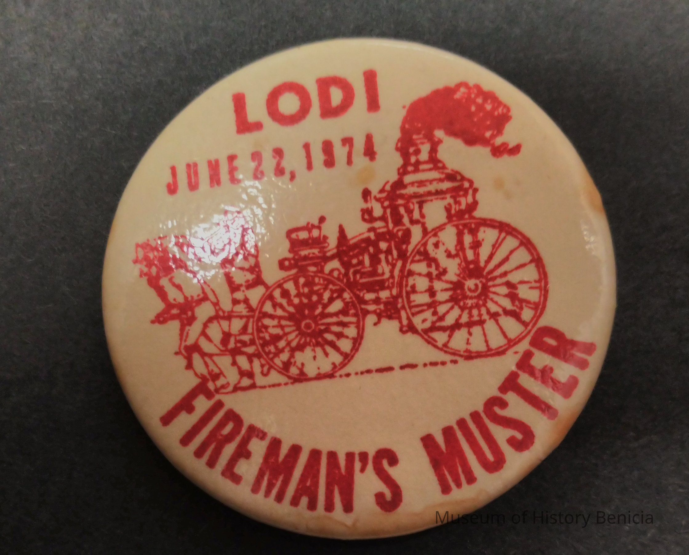 Red and White Lodi Fireman's Muster Pin - June 22, 1974