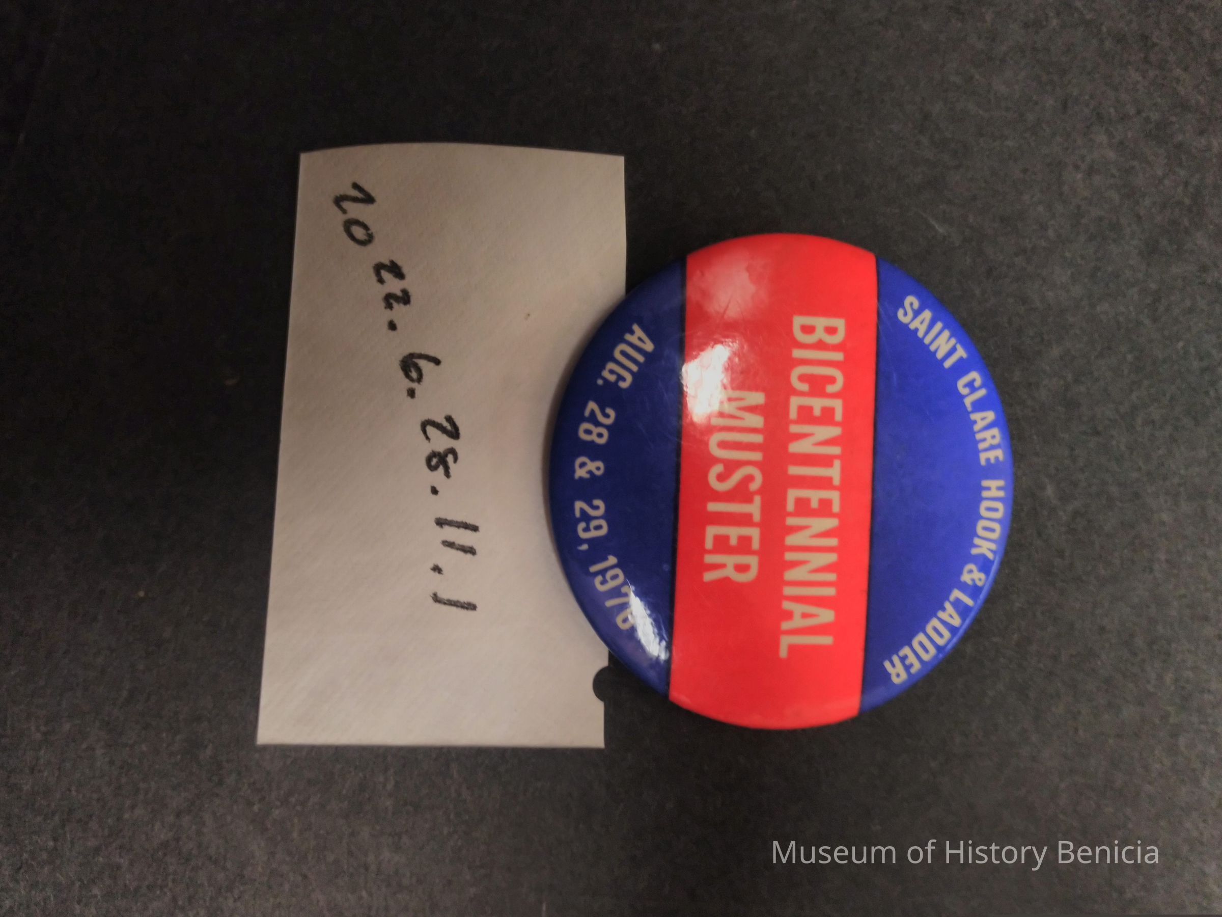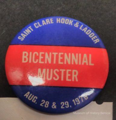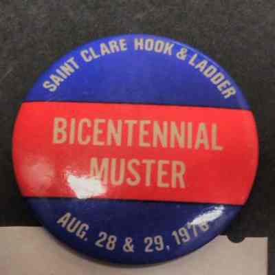 Red, White, and Blue Muster Pin - Saint Clare Hook and Ladder Bicentennial Muster Aug. 28 & 29, 1976