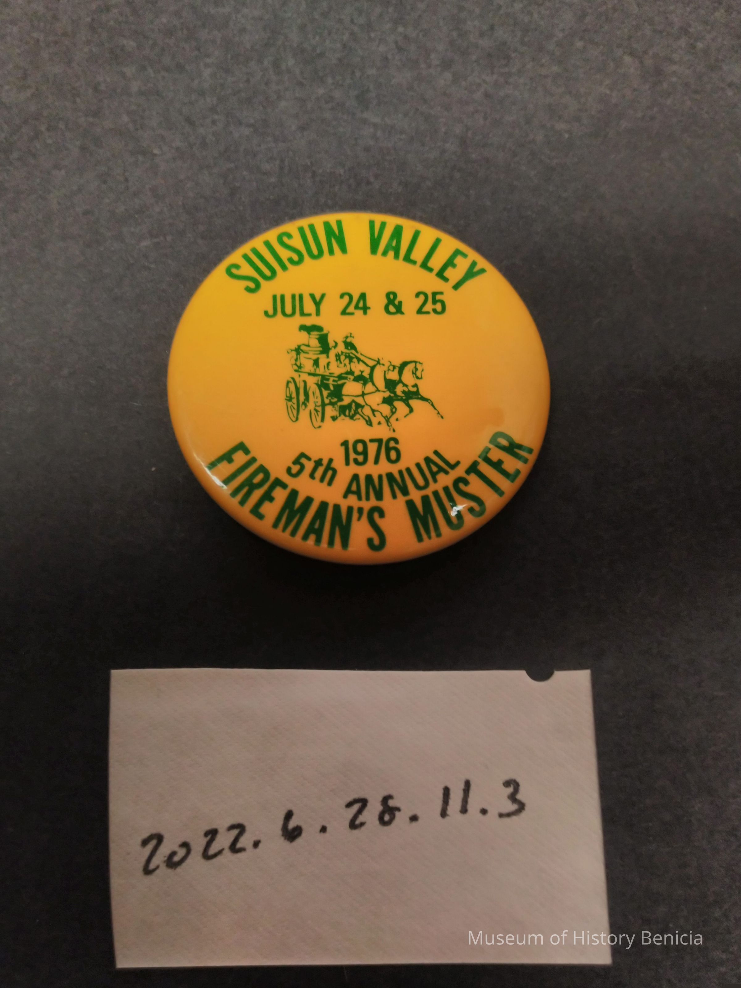 Green and Yellow Pin - Suisun Valley Fireman's Muster - 5th Annual July 24 & 25 1976