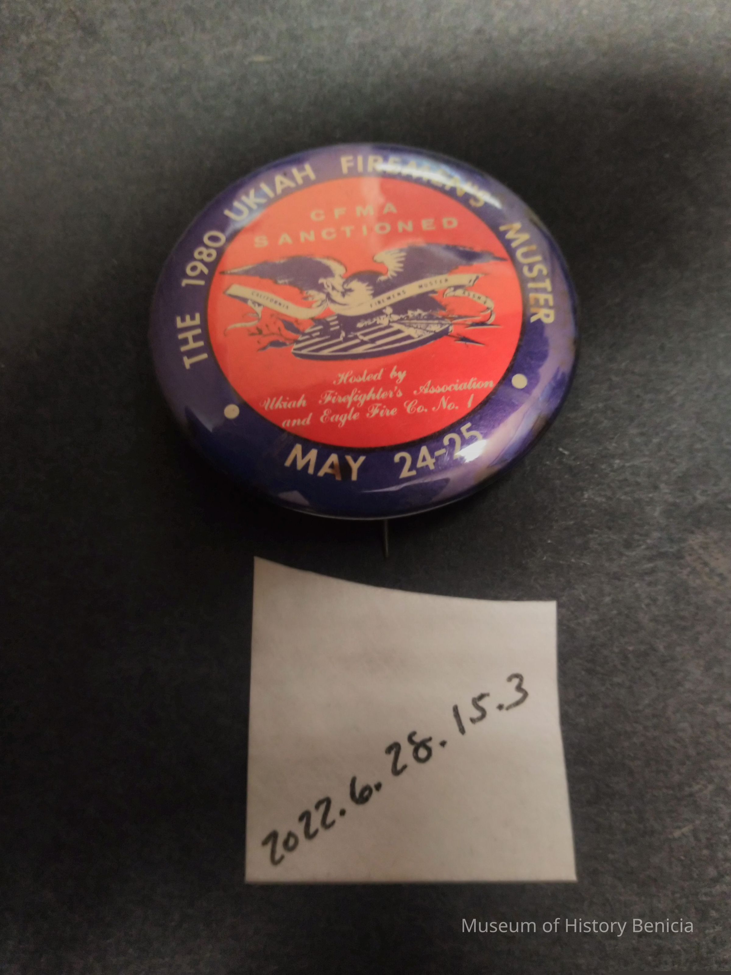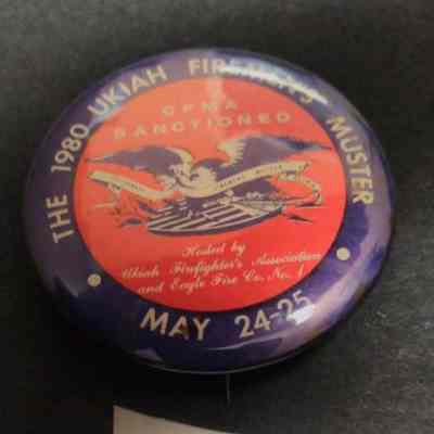 Red, White, and Blue Fire Muster Pin - The 1980 Ukiah Firemen's Muster May 24 - 25