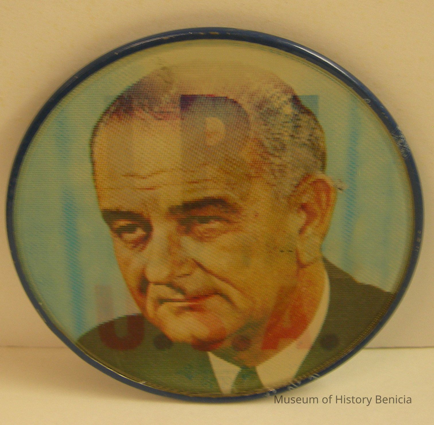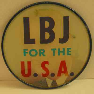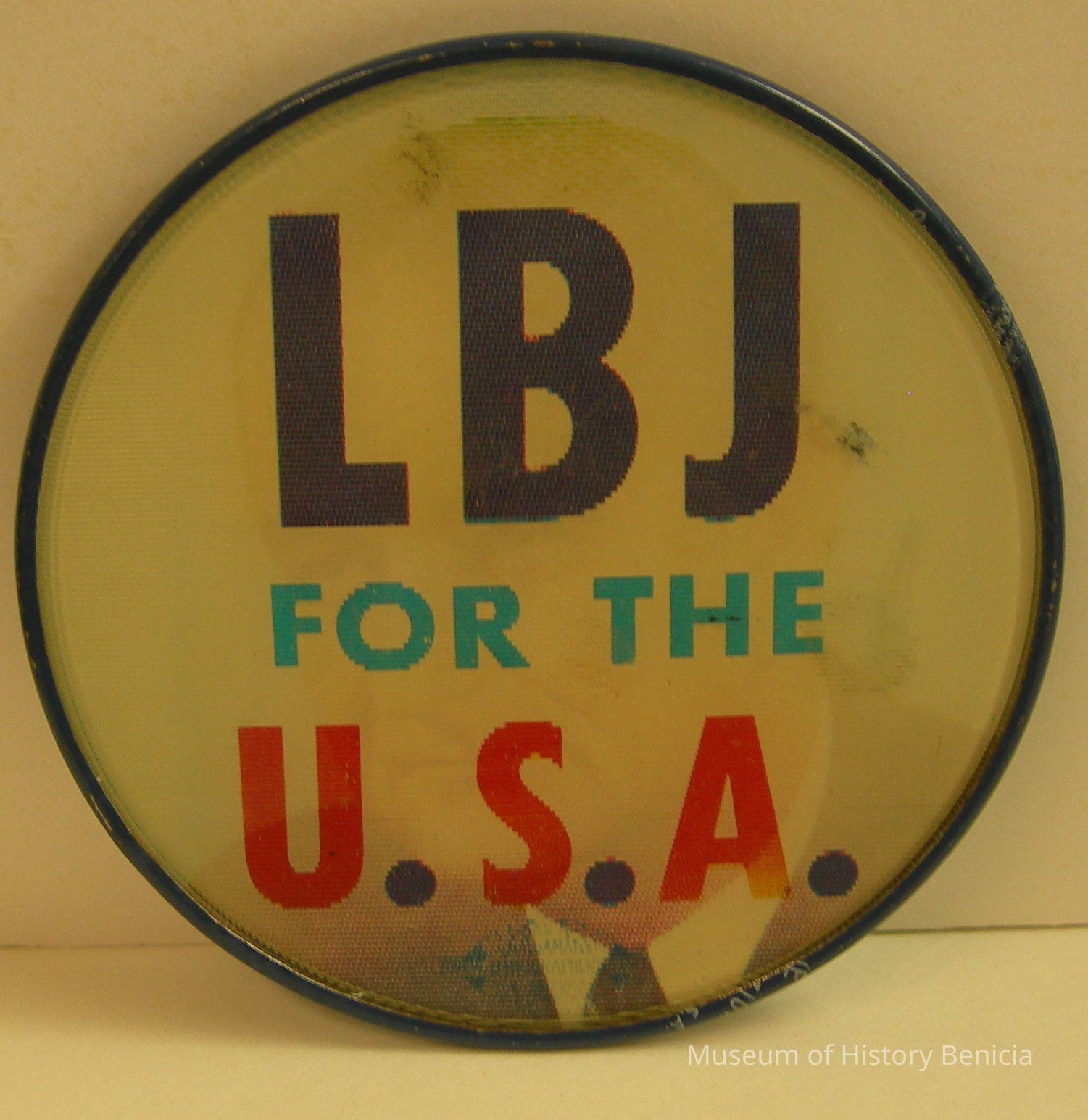 Button - plastic - political - dual/changing; one is image of Lyndon B. Johnson and the other is "LBJ for the U.S.A." 3" diameter