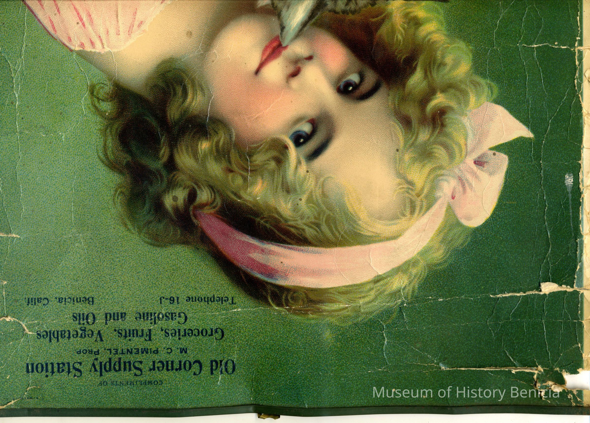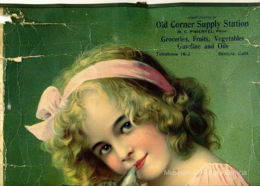 1930 business calendar for the "Old Corner Supply Station" in Benicia. The calendar is from the Old Corner Supply Station that was located at 602 West K St. (on the corner of West 6th) in Benicia.