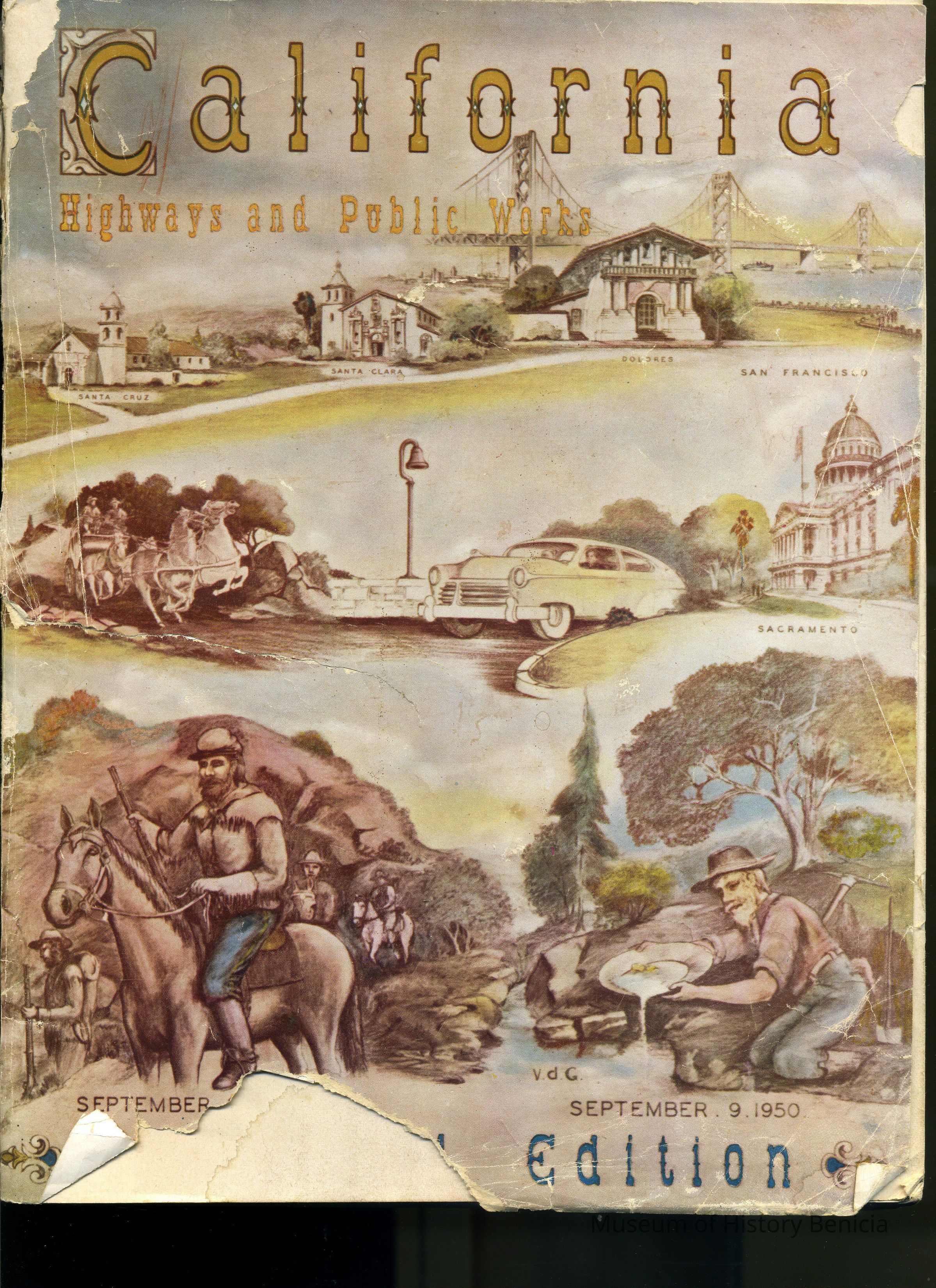Begins with Historic Trails of the "Padres", mentions many explorer routes and early highways, discusses a number of bridges and ends with maintenance and equipment of the Public Works/Highways Department (in 1950).