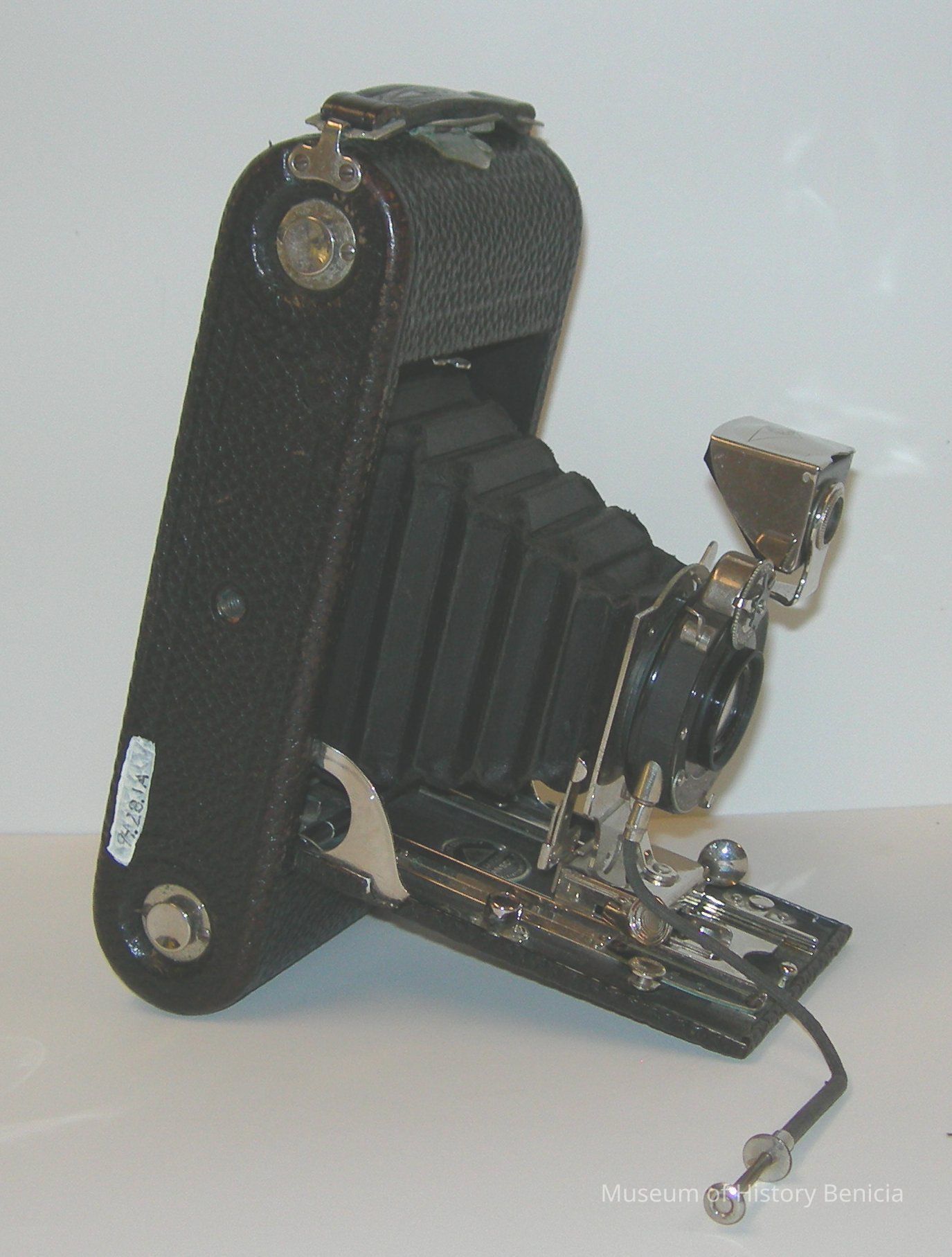 Ansco No. 1A folding camera; uses No. 6a or 6b film - 1-1/2" x 4-1/2" photo. Pat. dates of camera patent is 1912; the instruction manual is dated 1917