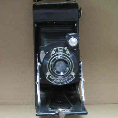 Kodak No. 1A Pocket Kodak series II. 1926-1931 black folding camera for making 2 1/4 x 31/4 images on 116 film. Bellows are in great shape and the stylus is still with the camera.Collection