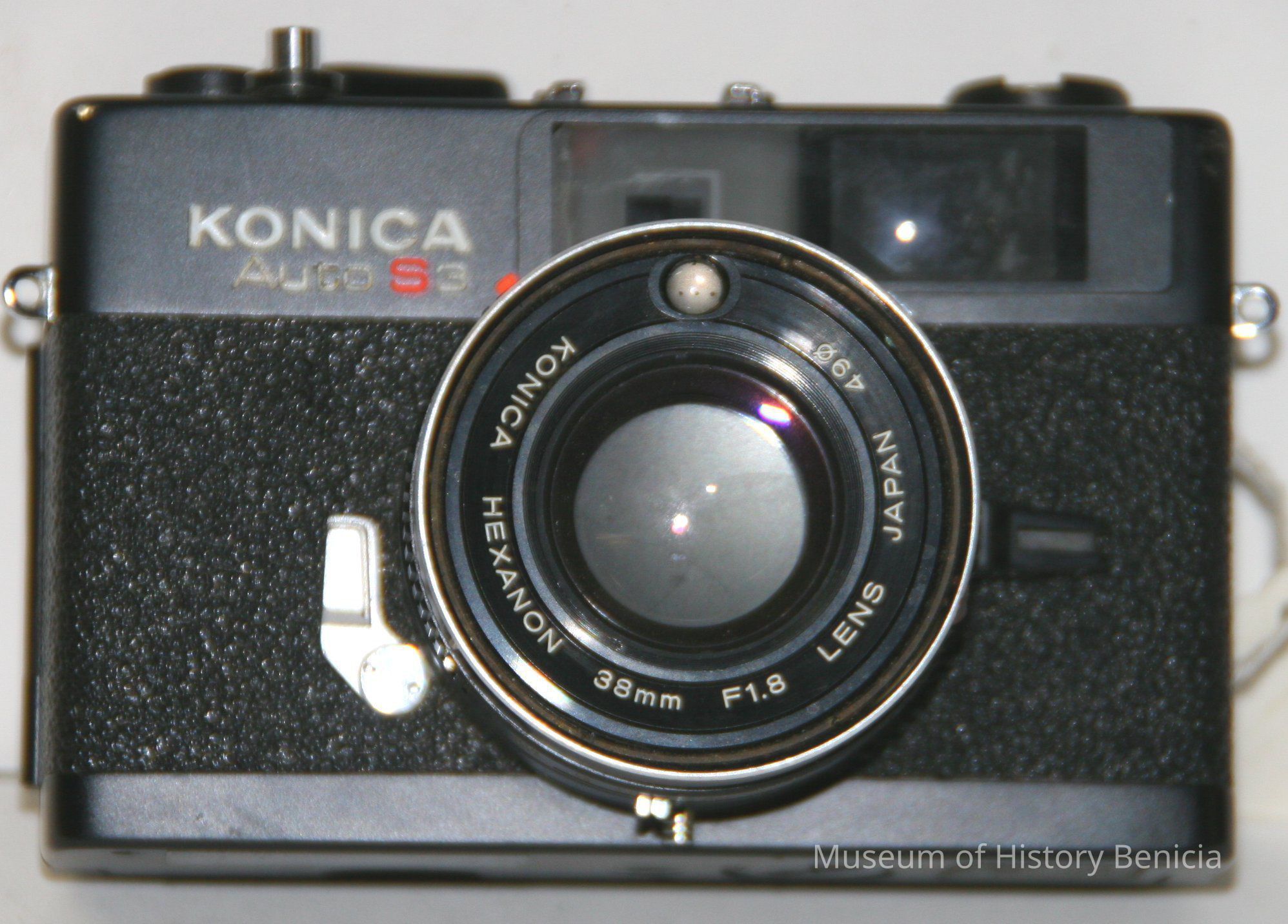 Konica Camera "Auto S-3" 135 mm rangefinder, found inside 93.3.6. Part of Konica "Auto-S" series. Made from 1963-65. Lens is f1.8/38mm Hexanon lens. S/N 223246.Collection