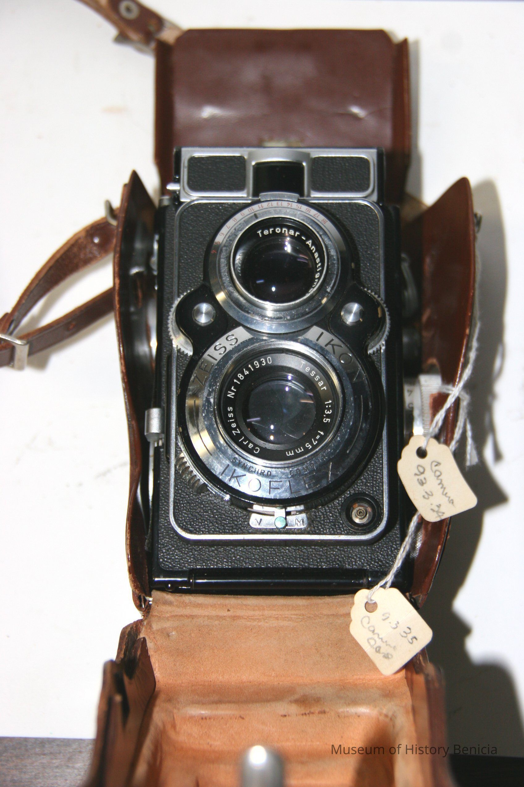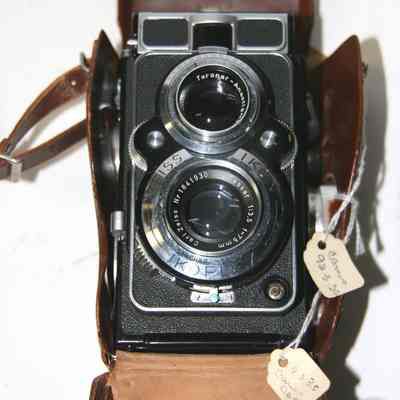 Zeiss IKON Ikoflex camera. Twin lens reflex type -- uses 120 size film. Has 75mm f:3.5 Tessar Zeiss lens 1841930. Has a synchro Compur shutter Has a roll of Tri-X black and white film in the camera. Serial # N22458. Looks like the Ikoflex "Favorit (887/16). The average cost of this camera in 2002 was $175-$250. An excellent camera of this model was $300-$450.Collection